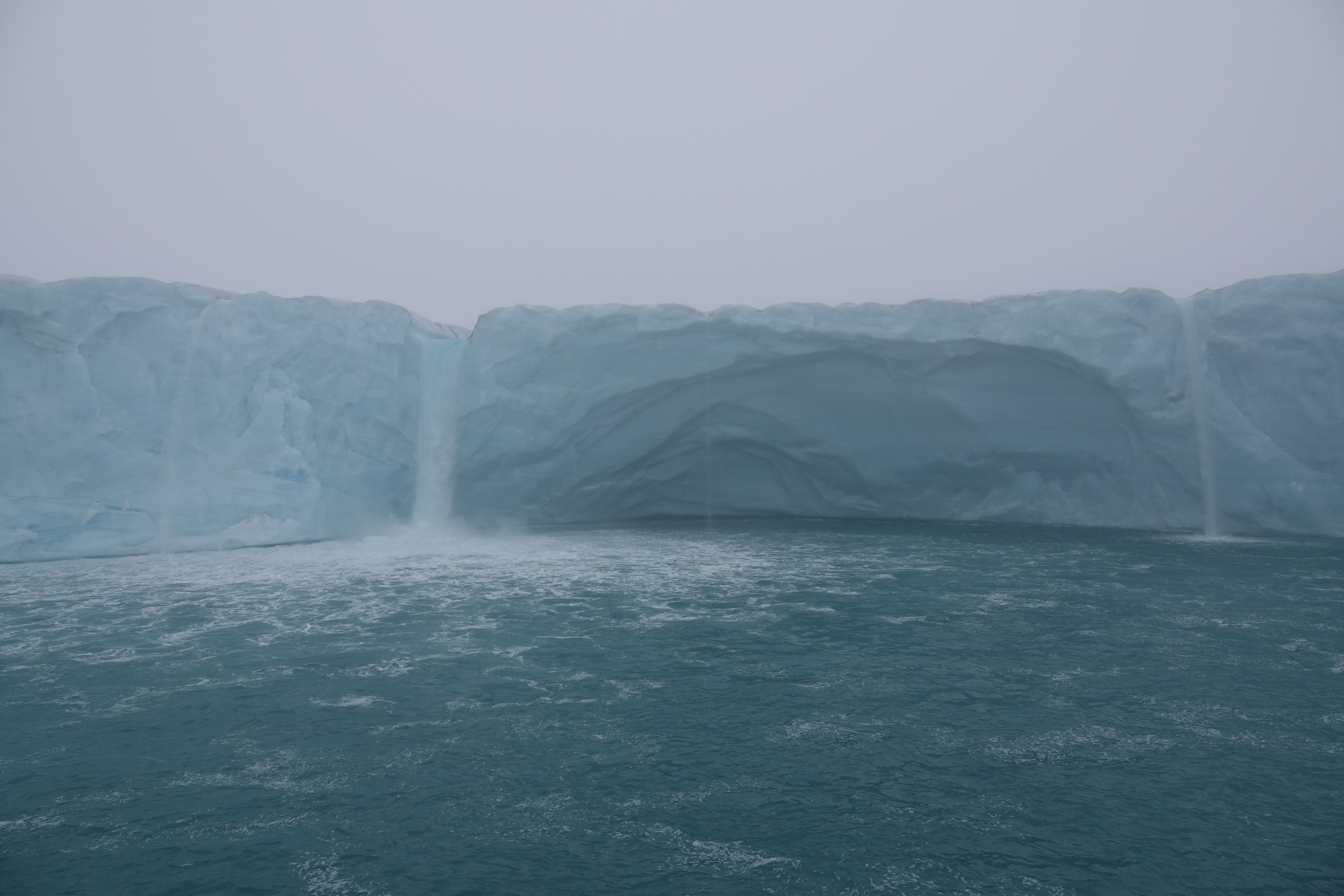 Den enorma och imponerande Bråsvallbreen var nästa mål och när vi ankom var den höljd i dis. Vi seglade längs glaciären till ett känt område där smältvatten forsar ner. När man kommer nära glaciären så inser man verkligen hur enorm den är. Det är en vägg av is och man ser varken början eller slutet av den med det mänskliga ögat. Vi kom nära det forsande smältvattnet med Quest och kraften och ljudet är slående. Vilka fina bilder vi fick här trots diset. Isens skiftande färger framträder tydligare utan solsken fick vi lära oss.