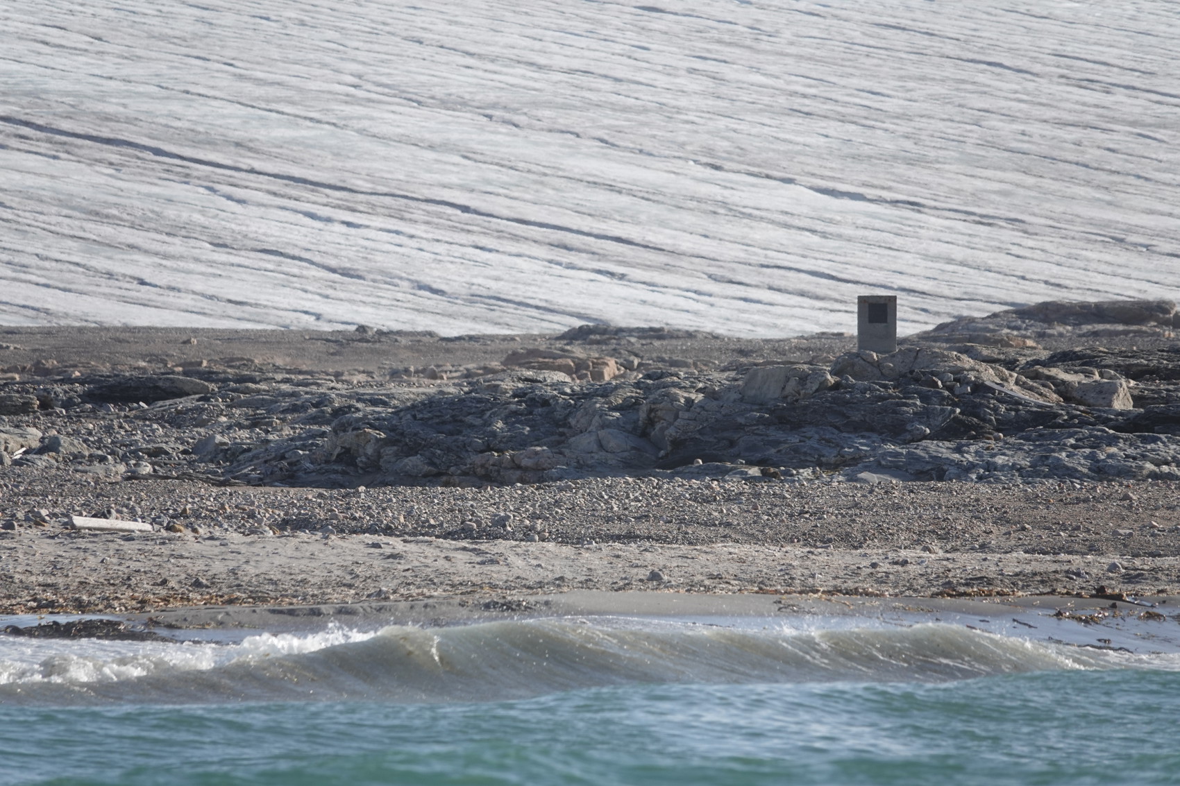 Vi ankom tidig morgon till Vitön och vilken syn det var. Det mäktiga istäcket är nästan ovalt, skimrande och dominerar synfältet. På västsidan vid Andréenäset finns dock en landsträcka utan is och det var ju där Andrée-expeditionen kom till ända. Förhoppningarna om den efterlängtade landstigningen grusades då flera isbjörnar syntes till - fyra stycken - och vi insåg att vi kanske fick nöja oss med att vara några få tiotal meter från stranden. Ön ligger så kraftigt exponerad för havet och vindarna att bara det är en prestation. Sjön var krabb och zodiacerna fick kämpa lite, men vi tog oss längs strandlinjen mot platsen för monumentet och där expeditionen fick sin sista vila. Vi kom dit och trots vågorna gick det att fotografera platsen och monumentet, om än några tiotal meter från land. Jag har alltid velat komma till den här platsen och ögonblicken där gjorde mig rörd. Tänk att få se denna historiska plats och känna historiens vingslag och känna närheten till expeditionens öde.