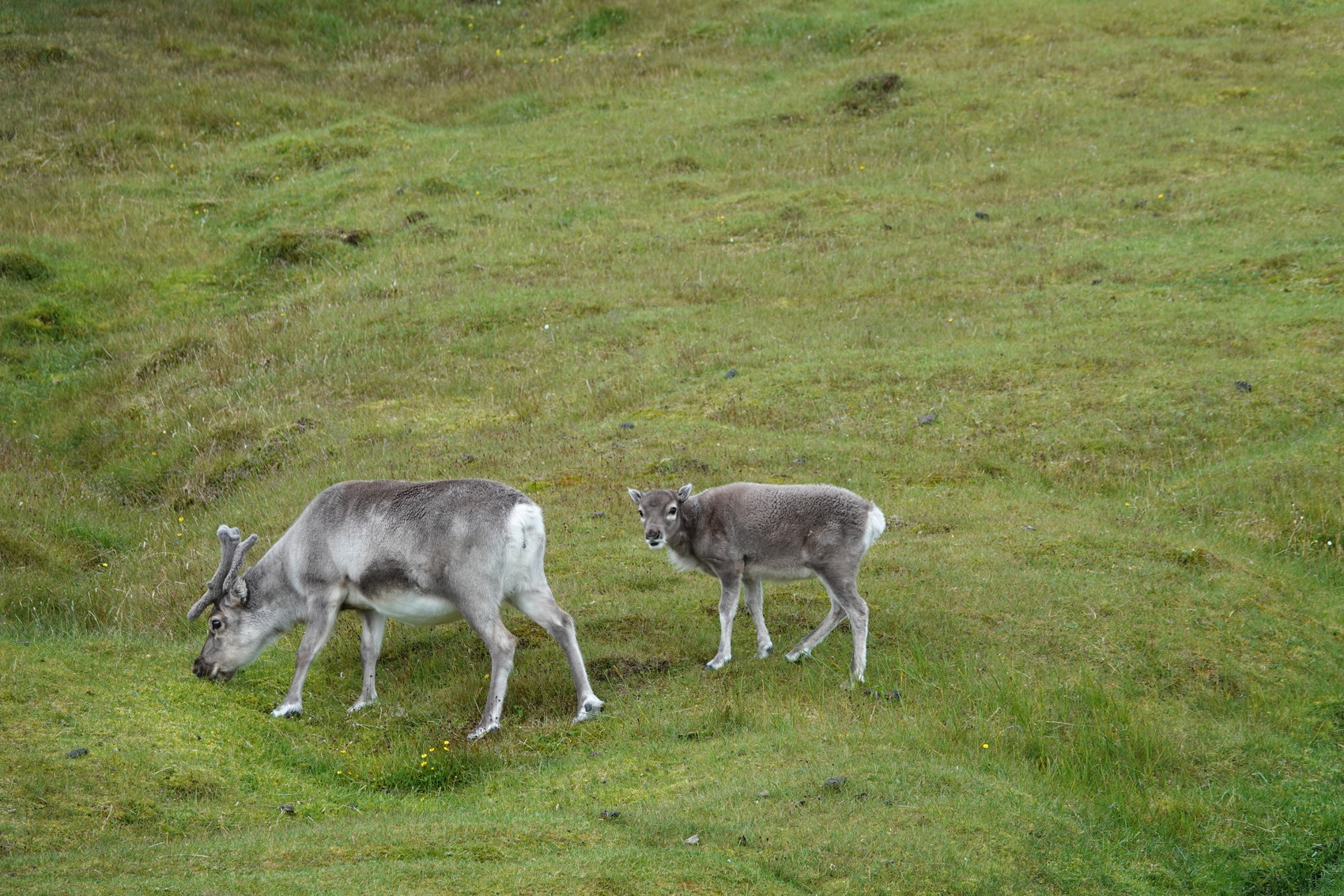Nu närmade sig resan sitt slut och den sista dagen hade guiderna planerat in två landstigningar. Vi seglade norröver mot Isfjorden, det gungade en del men ändå rätt behagligt. Vi ankom på morgonen till Alkehornet vid Isfjordens mynning. Området där har många svalbardrenar och det visade sig stämma väl. Vi gjorde en rätt lång hikingtur och fick riklig möjlighet till att se dem på nära håll.