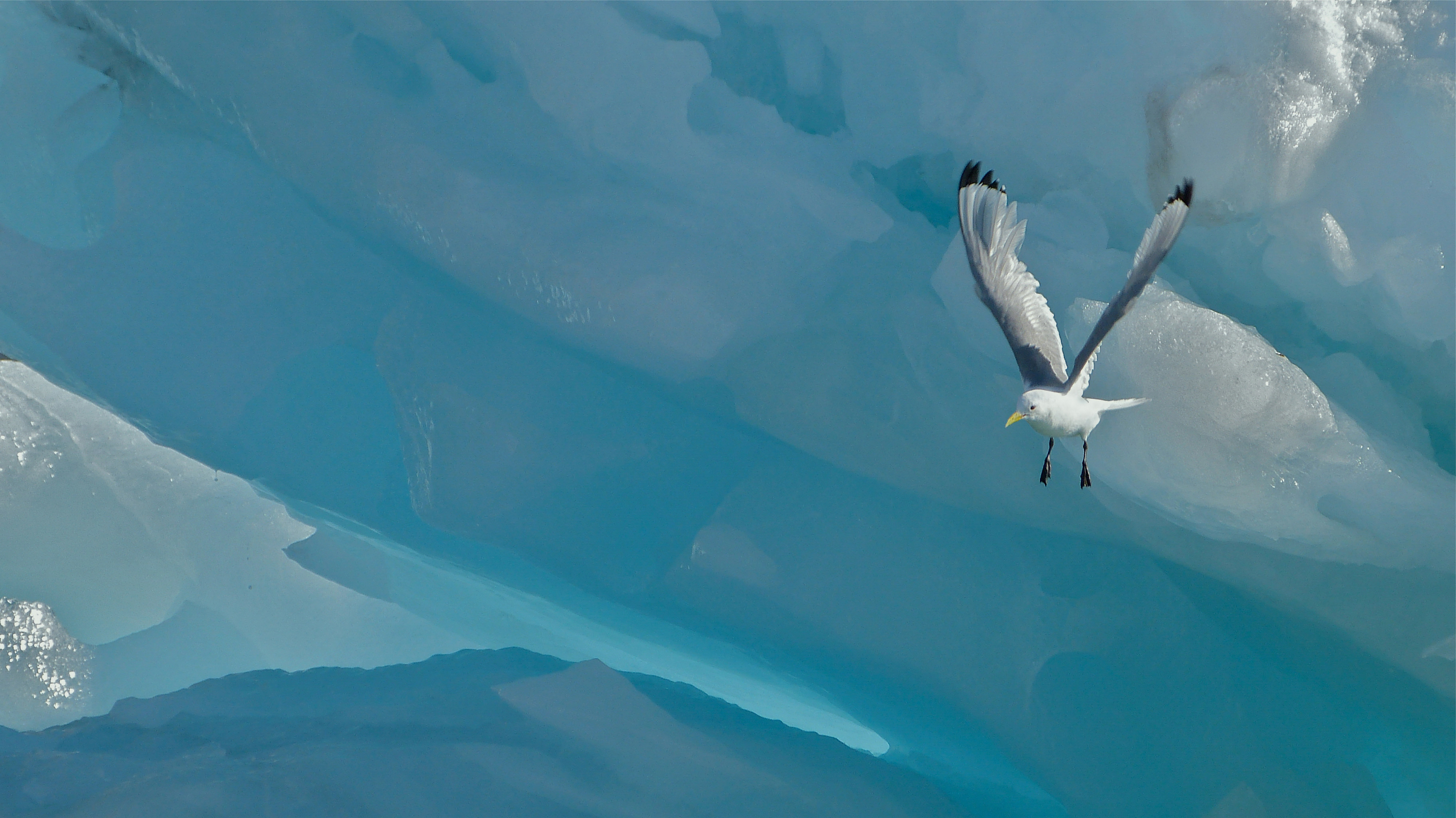 Ossians Sars är också en fågelklippa, längst in i mäktiga fjorden. Här vandrade vi, långt som kort, bland lysande fjällglim, fjällsippa och kantljung uppför en stig och bland stenskravel. Magnifik utsik med en glimt av fågelklippan i fågelperspektiv. Ungar skönjdes i ett par av bona. En ung nyfiken ren: kom fram, betraktade oss med enorma ögon på armlängds avstånd.