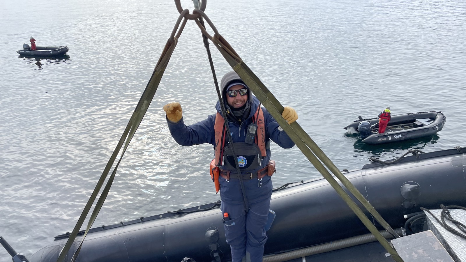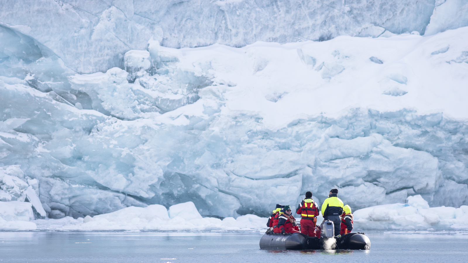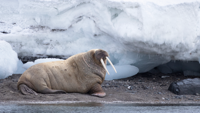 Högst upp på Idunneset hade vi en mäktig utsikt över två glaciärer – Idunbreen och Bragebreen. Efter lunch seglade vi längs iskanten och fick se ytterligare en isbjörn. Den befann sig långt ute på isen och gick mot horisonten, en vacker observation. Nästan 10 minuter senare såg vi våra första valrossar – en mamma och en kalv – som vilade på iskanten.
