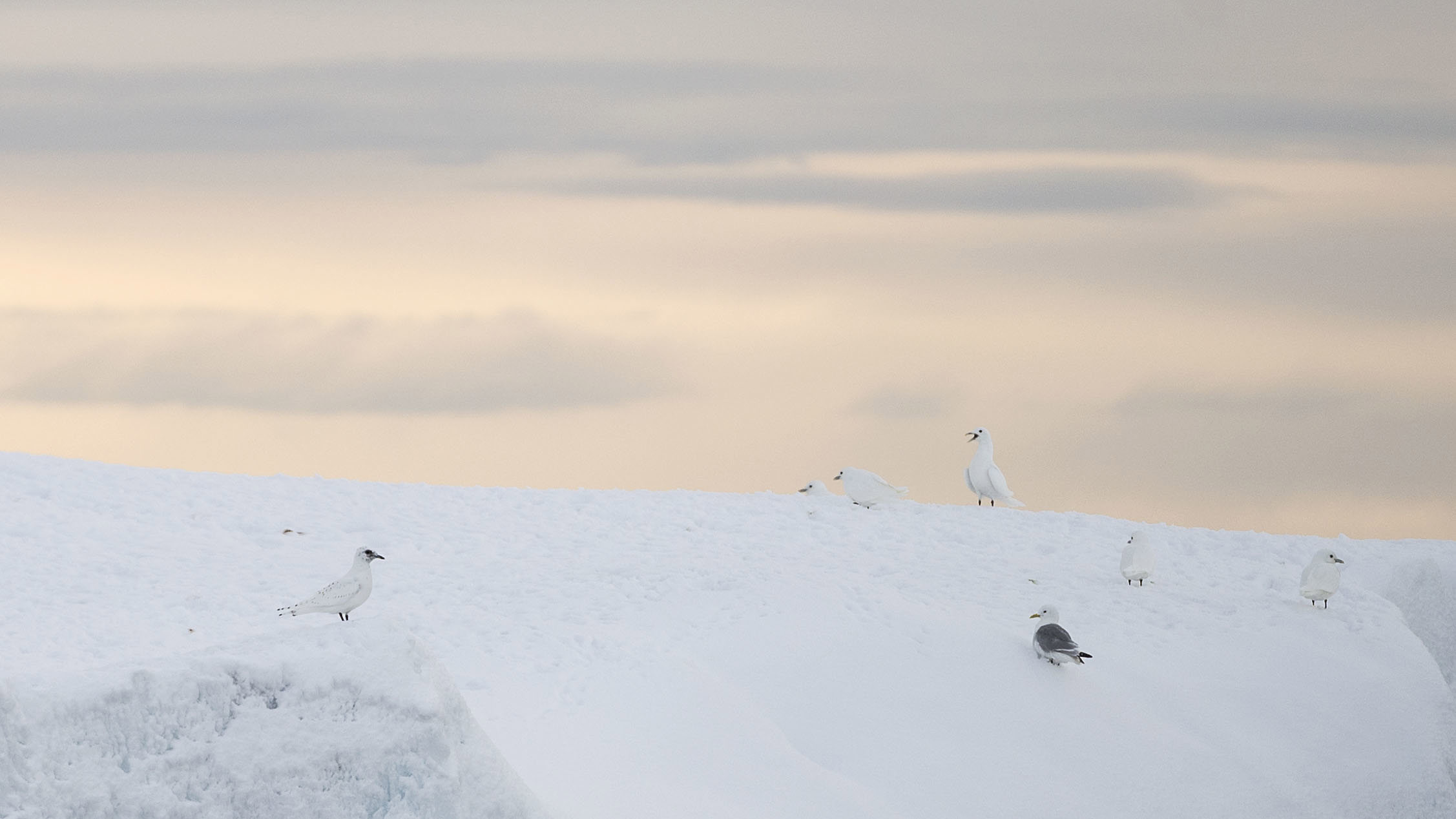 Att islandskapet är vackert när det strukturerar havsytan fick vi uppleva också denna dag, där vi provade på att gunga på ett isflak 700 meter över botten. Stormfågel, tretåig mås, tobisgrissla och ett par alkekungar förde in liv i isen, liksom uppdykande Grönlandssäl. Och senare, på ett rejält isberg, inte mindre än 16 ismåsar!