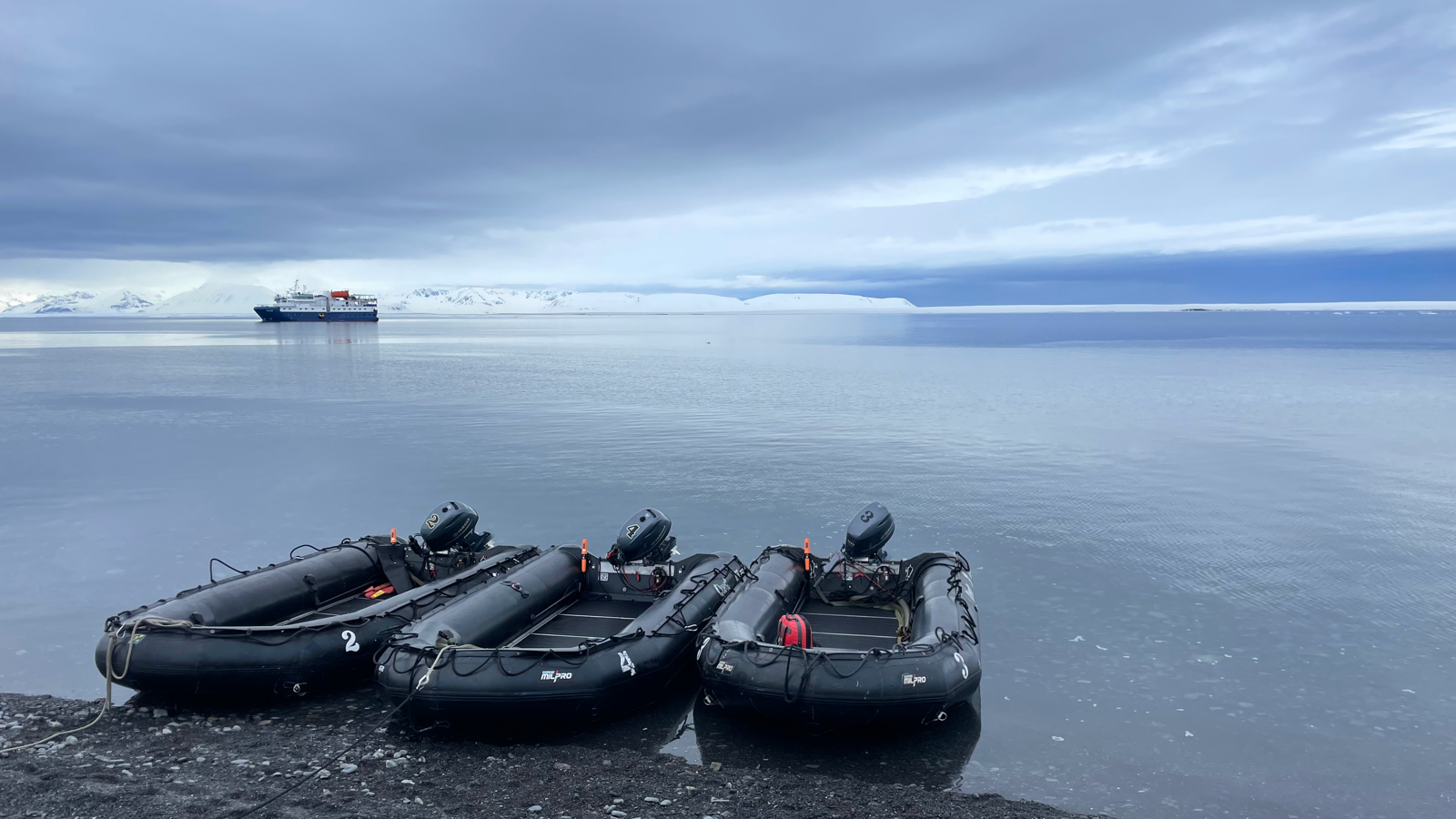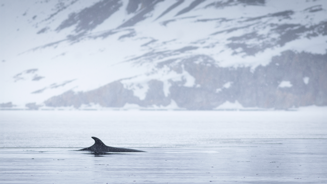 Vi vaknade upp till vinden som piskade mot fönstren på vårt fartyg M/S Quest. När vi gav oss djupare in i Liefdefjord blev det stilla, och vi kunde sänka ner gummibåtarna vattnet. Även om vädret var grått och snöigt, visade det sig bli en härlig två timmars kryssning längs iskanten, där vi delade berättelser från Svalbard.