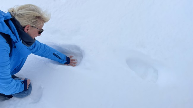 Vi landsteg och hade förmånen att se färska isbjörnsavtryck som passerade stugområdet - tassavtryck från en mamma och en unge. Efter att ha inspekterat spåren och lyssnat till lokala berättelser gick vi på en vandring längs strandlinjen. Vi såg Svalbardsrenar och fjällripor och avslutade med att plocka upp skräp längs strandlinjen.