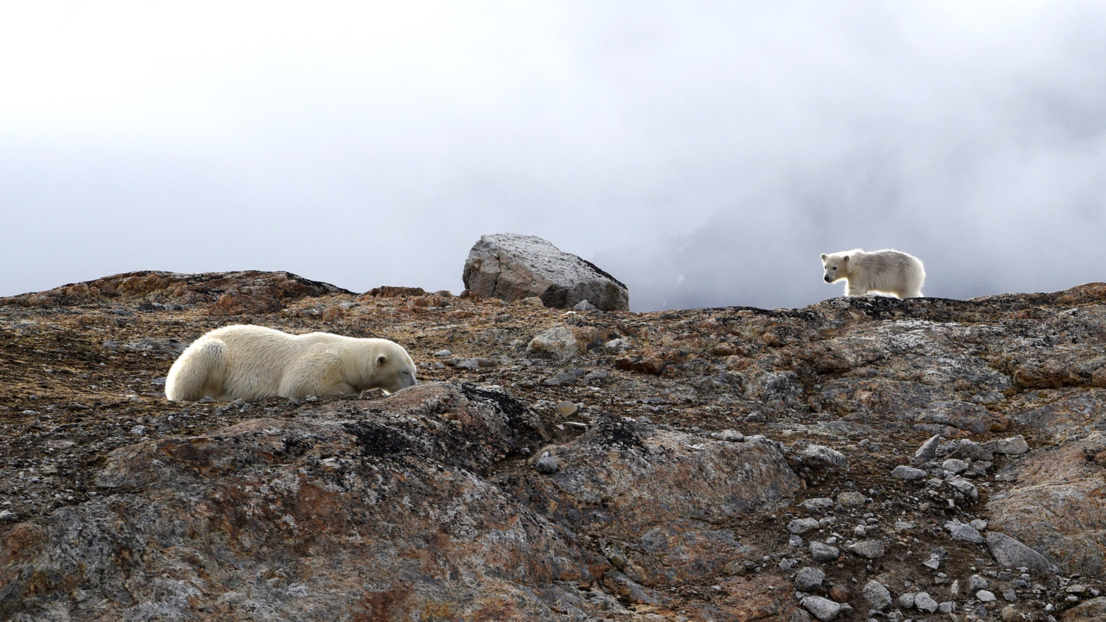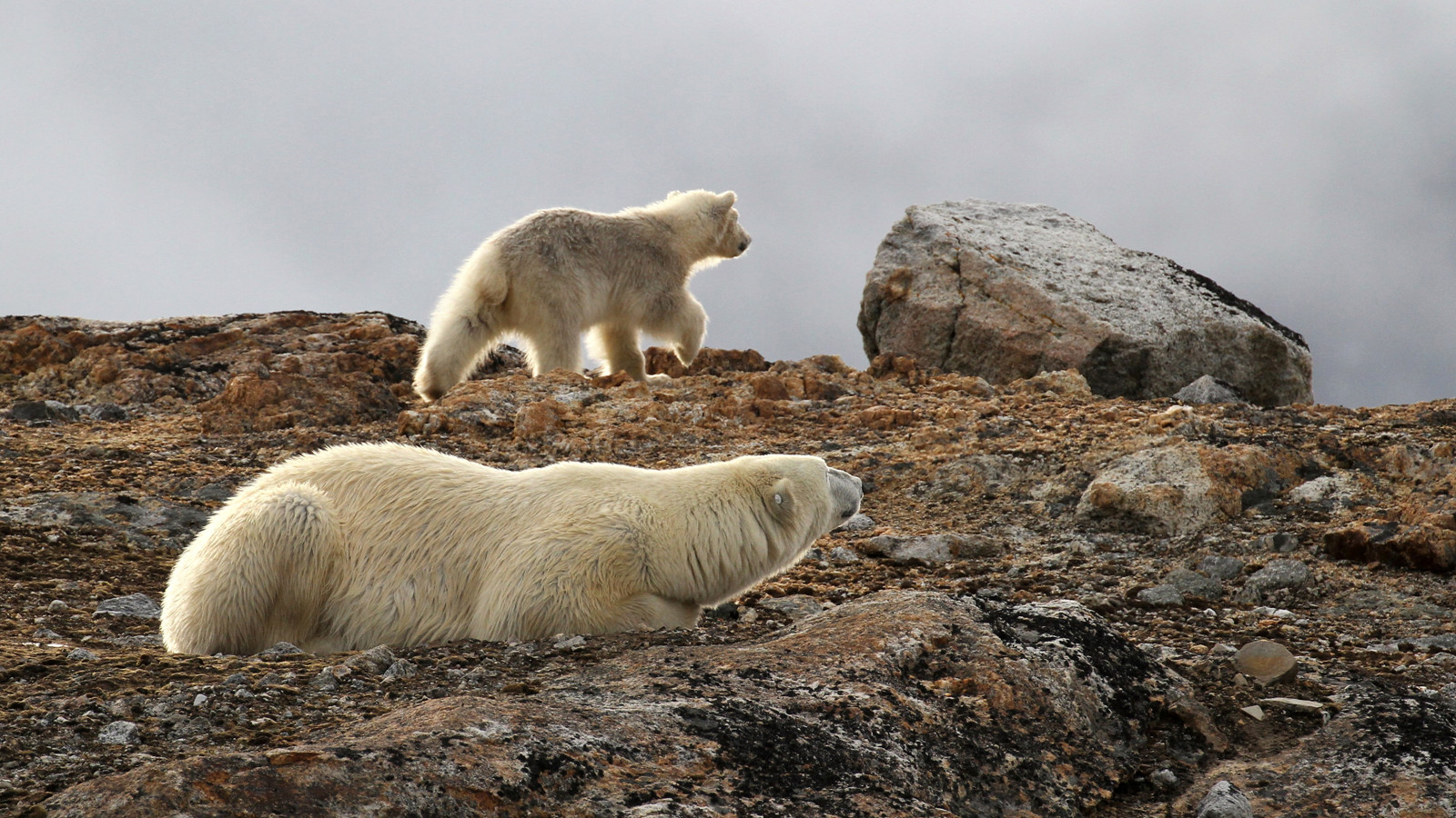 Vi var redo att gå till sängs när vi via högtalarsystemet hörde att en isbjörnshona låg och vilade framför oss. Snabbt var vi i kläderna igen! Först från skeppet, och sedan från Zodiacerna, beundrade vi hur den lilla ungen diade och lekte med sin mamma om vartannat.
