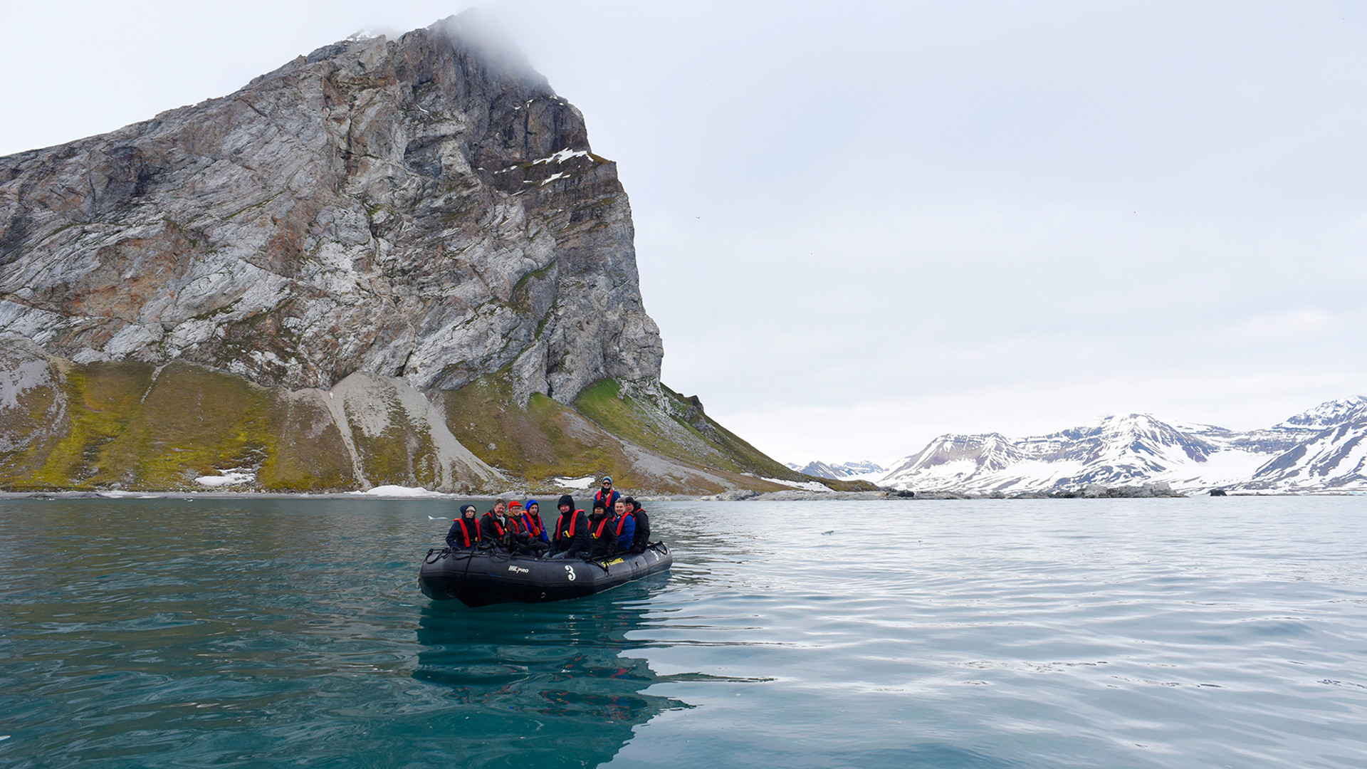 Nordvästra hörnet av Spetsbergen välkomnade oss med ett spektakulärt landskap av högresta berg och stora glaciärer. Smeerenburgbreen lyste isblå, och färgen förstärktes ytterligare av det dimmiga vädret. Från Zodiacerna beundrade vi islandskapet under vördnadsfull tystnad när ett mullrande ljud hördes - glaciärfronten kalvade! På säkert avstånd kunde vi se flera större kalvningar, mållösa över hur mäktig upplevelsen var.