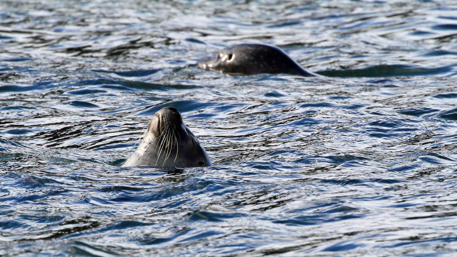 Mitt i en tugga lämnar vi vår lunch eftersom det har siktats val just söder om Hornholmen. En flock på 60 vitvalar simmade mot fartyget och följde sedan strandkanten i motsatt riktning. Strax därefter kom en knölval för att visa upp sig, med stjärtfena och allt. Vilken aktivitet det är i Brepollen!