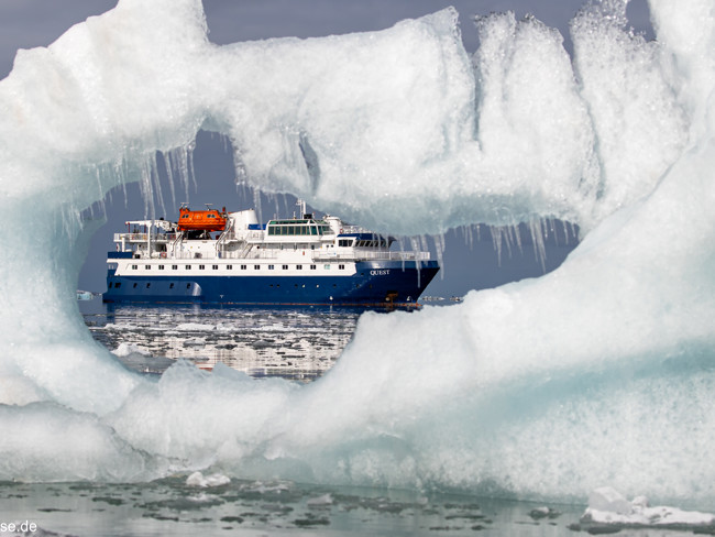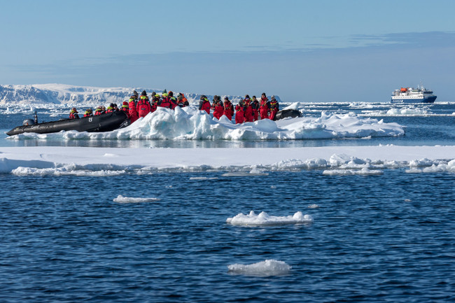 När isflaken långsamt rörde sig förbi MS Quest, gjorde vi oss redo vid landgången för vår Zodiac-kryssning. En efter en gled Zodiacerna genom det spegelblanka vattnet. Vi njöt av den arktiska tystnaden denna magiska morgon, med endast ljudet från enstaka spetsbergsgrisslor som dök i vattnet och det svaga knastrandet från smältande havsis i bakgrunden.