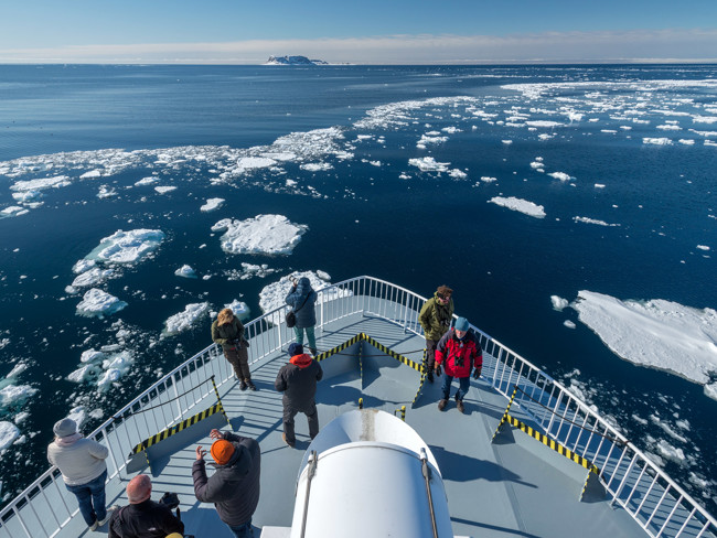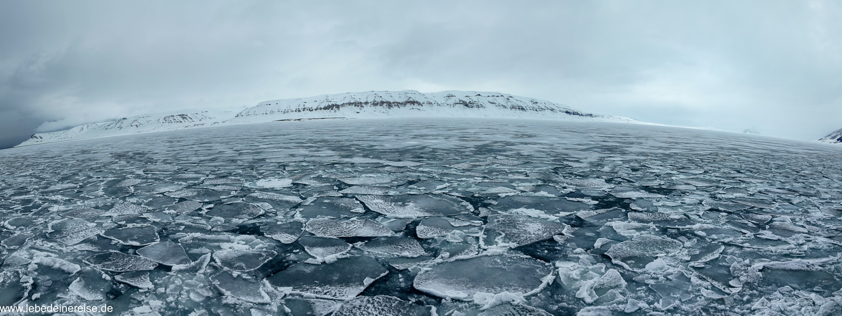 Vi vaknade upp till en vacker och stilla morgon, då vi gick in i drivisen. Vi befann oss mitt bland bergen på Sjuøyane, vars silhuetter speglades i det blanka havet. Dessa öar var den nordligaste punkt vi kunde nå här på Svalbard, och från och med nu var det bara packis hela vägen till Nordpolen.