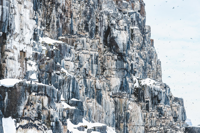 – Jag har flera minnesvärda ögonblick. Ett var när vi tidigt på morgonen åkte ut till fågelklippan. Hela havet ”kokade” av fåglar som spanade efter en plats på bergväggen, och när vi kom närmare såg vi hur även berget ”rörde sig” av alla fåglar som redan fått en plats på klippavsatsen. Det var helt magiskt. Ett annat starkt minne är när vi färdades med gummibåten och såg en en ung isbjörnshona som sprang vid vattenbrynet. Hon stannade upp och började leka medan vi betraktade henne på avstånd. Det var mäktigt.