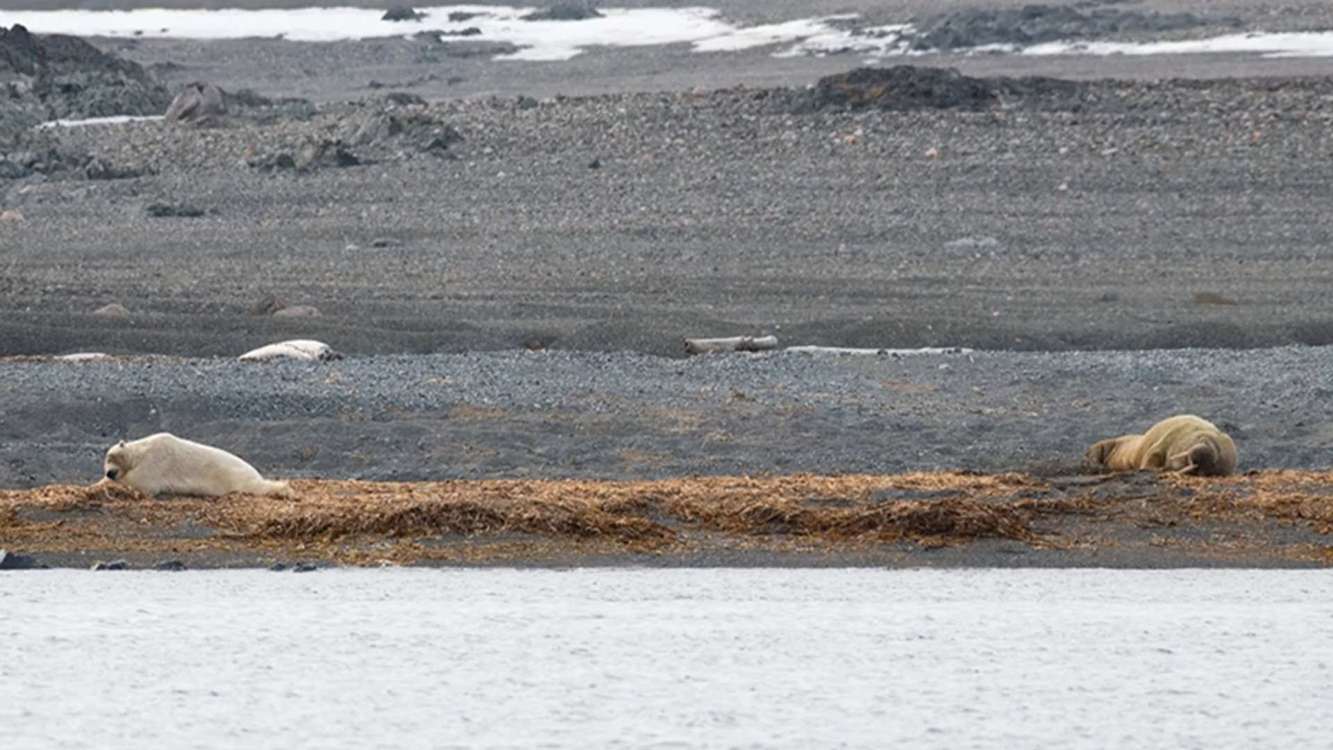 Vi informerades om lugnt och vackert väder - samt att resans andra och tredje isbjörn låg vilandes på en snöfläck på styrbord sida. Många av oss kom snabbt ur sängarna med kikarna i högsta hugg för att få se dessa magnifika djur innan frukosttid. Strax efter gav vi oss ut med Zodiacerna för en expedition längst Storøyas kust. Från våra gummibåtar fick vi möjligheten att spendera en förmiddag med valrossar. Vi betraktade dessa massiva, men lika så eleganta, simmare från ett respektfullt avstånd där vi kunde observera deras beteende och lyssna till deras ljud. Kommunikationen mellan valrossarna satte ett leende på våra läppar.