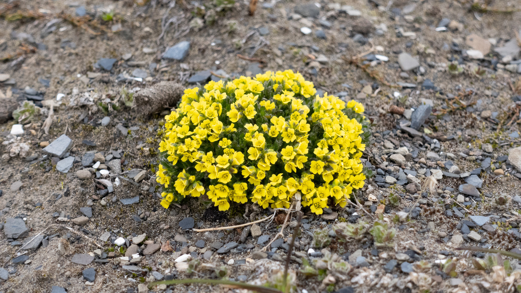 Kapp Lee är en gammal fångststation där valar och valrossar slaktades i massor från 1600-talet och framåt. Resterna från den tiden ligger spridda över hela udden i form av ben och skallar från alla möjliga djur men förmodligen flest från valrossar. Udden och vandringen upp mot slänterna kantas av grön frodig tundra. En liten fjällräv möter oss nästan så fort vi stiger iland. Den kilar rastlöst omkring och håller sig på sin kant av slänten vi landstigit vid. Kontrasten mot Nordaustlandet är stor, Edgeøyas tundra är frodig och full av arktiska blommor. Vårt mål är att gå en bit upp på berget där vi ska få fin utsikt över Storfjorden. På vägen upp möter vi en grupp Svalbardsrenar. Några nyfikna årskalvar vågar sig försiktigt närmare och vi får en chans att ta riktigt fina bilder. Idag ser vattnet på Storfjorden lugnt ut och solen glittrar i dyningarna från söder. I morgon ska vi ge oss längre in i fjorden och utforska den karga östkusten av Spetsbergen.