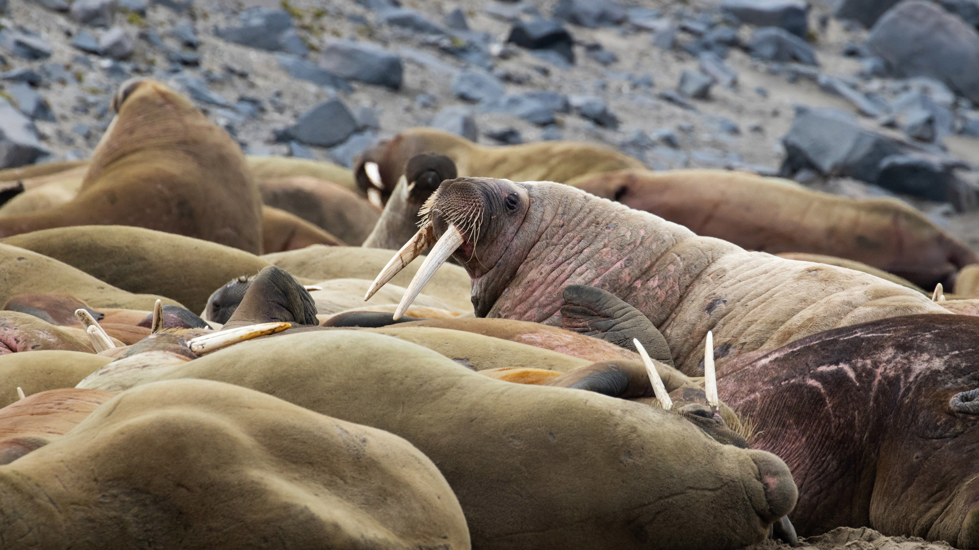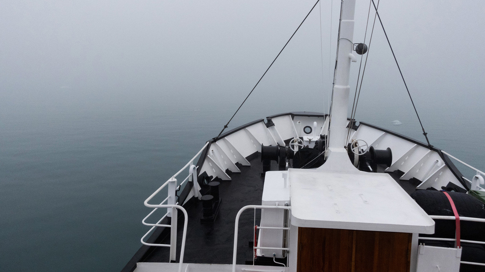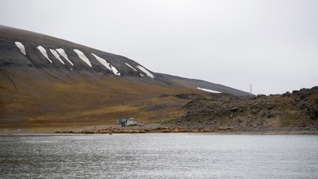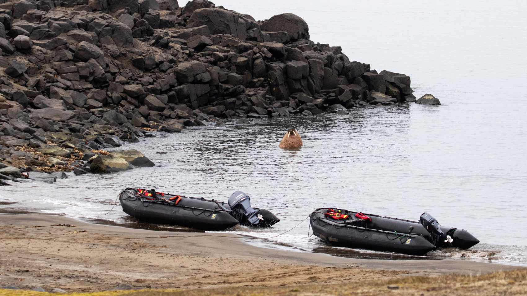 Efter att ha färdats med M/S Sjøveien igenom tidvattenströmmarna i Freemansundet ankrar vi vid Kapp Lee, längst norrut på Edgeøya.