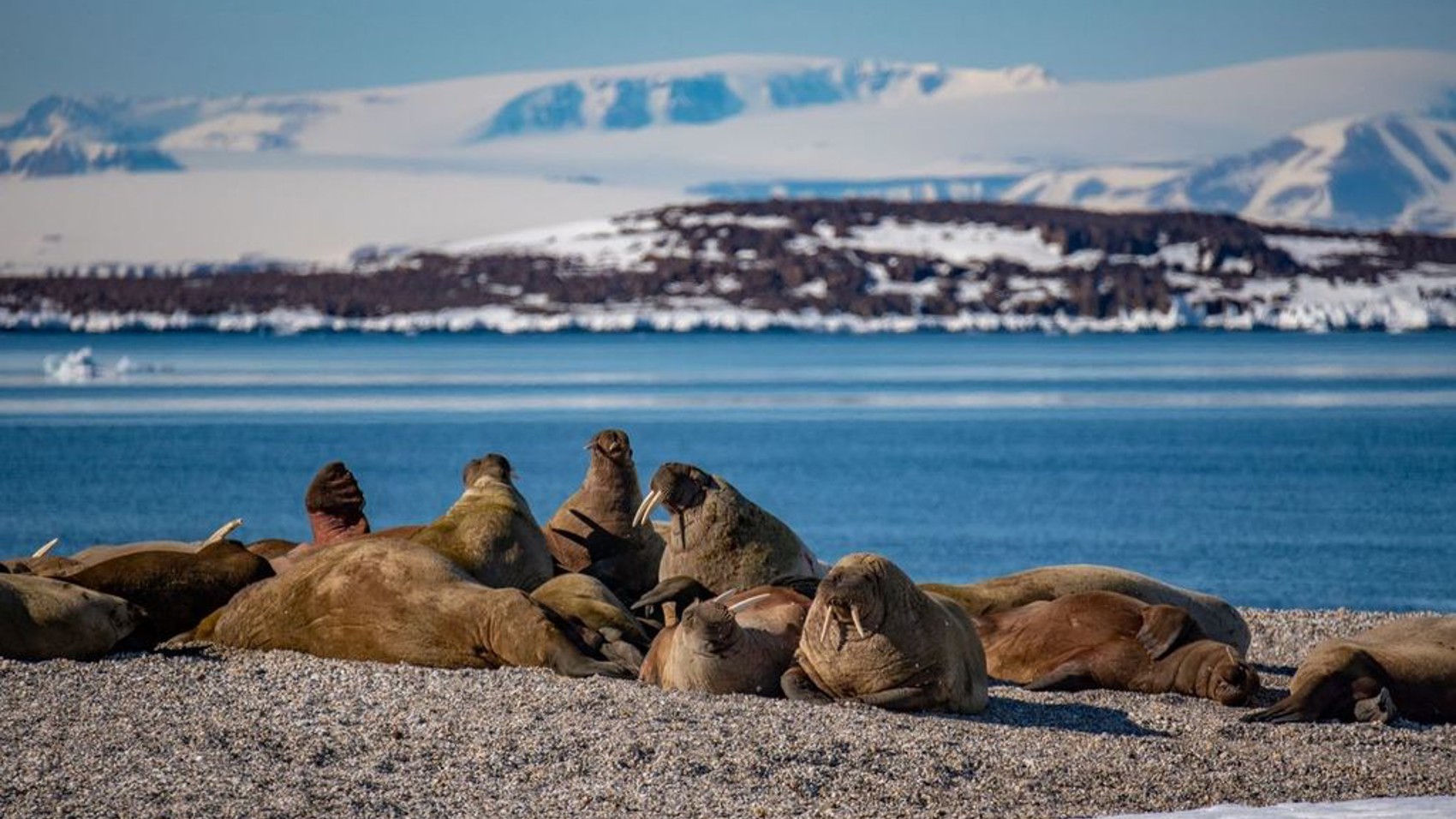 Som om morgonen inte kunde bli bättre såg vi några valrossmödrar och kalvar nära vattnet på baksidan. Kalvarna var födda i maj och några av dem var fortfarande ganska små och saknade betar. Vi kunde dock se flera generationer eftersom valrossarna stannar hos sina mammor under de första tre åren.