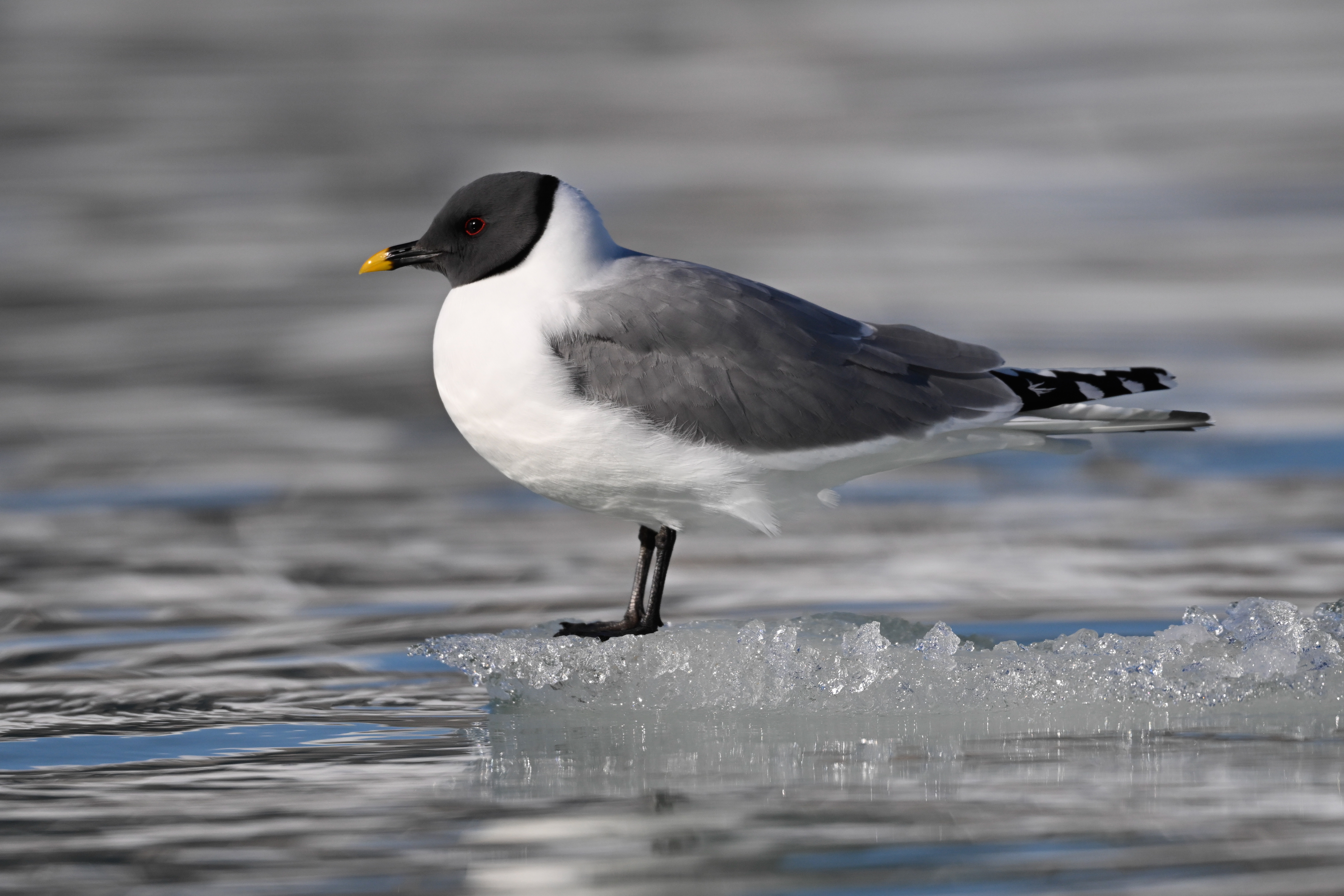 När vi kryssade längs havet blev det lugnare och lugnare tills vattnet var som en spegel och överallt sågs silvertärnor och måsar, guppandes på ytan eller sittandes på isflak i alla storlekar.