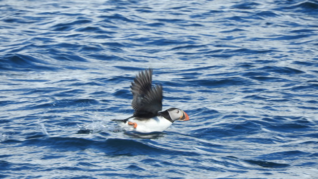 Vi närmade oss Svalbards nordvästra hörn ganska tidigt och det blåste styv kuling så vi bestämde oss för att spana längs iskanten från fartyget i hopp om att få syn på djur. Mellan Fuglesangen och Klövningen låg en del unga valrossar i vattnet, men de var allt vi såg här. Efter lunch bestämde vi oss för att utforska Fuglefjorden med våra gummibåtar. Till en början var här också ganska tomt på djurliv, men landskapet och vädret var otroligt. Närmare Svitjodtbreen såg vi stora flockar av ejder och äntligen fann vi också praktejder bland dem. Mitt i fjorden såg vi även små grupper av Lunnefågel, en fågel som vi ännu inte hade sett på nära håll under vår resa. Sjøveien plockade upp oss på vägen och vi satte kurs Smeerenburgbreen - det ryktades att det hade setts björn här tidigare, och mycket riktigt fanns där en björn! Vi kunde på distans följa björnen där den gick och snart sjösatte vi våra gummibåtar på nytt. Björnen vandrade beslutsamt längs kustlinjen i nordlig riktning. I Holmiabukta stannade den för att fiska, ljuset var perfekt och vi fick äntligen uppleva ett superfint möte på nära håll!