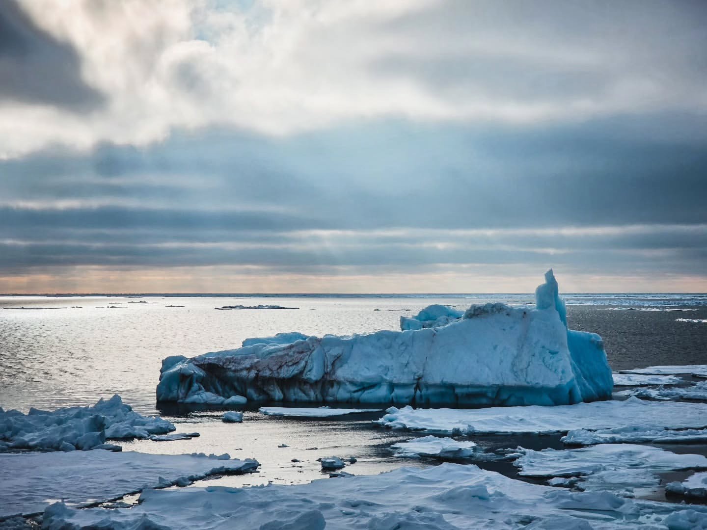 Vi lade oss till ro i isen och drev med strömmen över natten, medan färgstarka solnedgångar smyckade himlen.