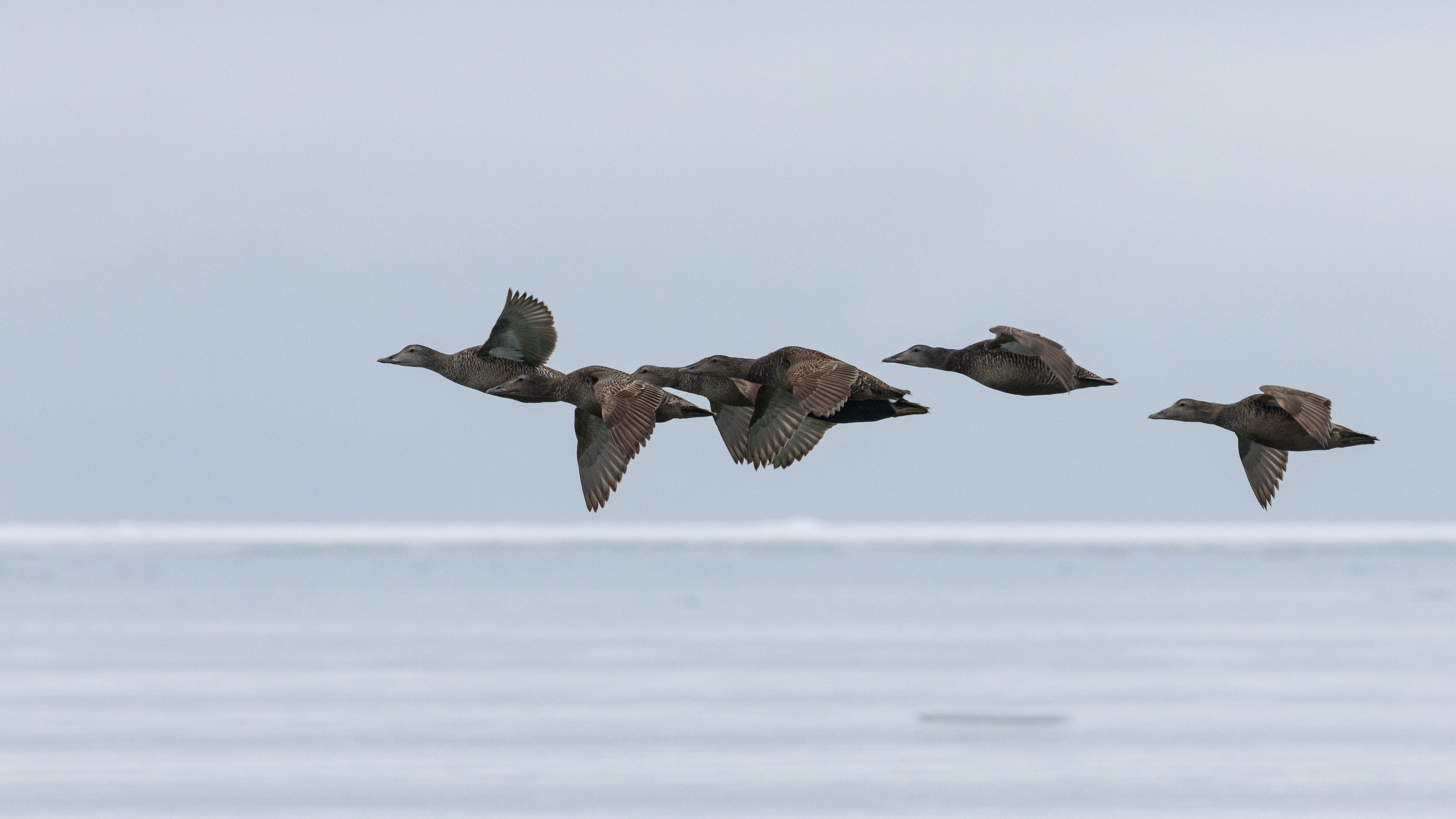 På väg ut ur fjorden möter vi ett gäng gäss, Spetsbergsgäss. De drar sig undan när vi närmar oss och då inser vi att de ruggar och faktiskt inte kan flyga. Då svänger vi undan och gör en stor omväg för att inte skrämma gässen.