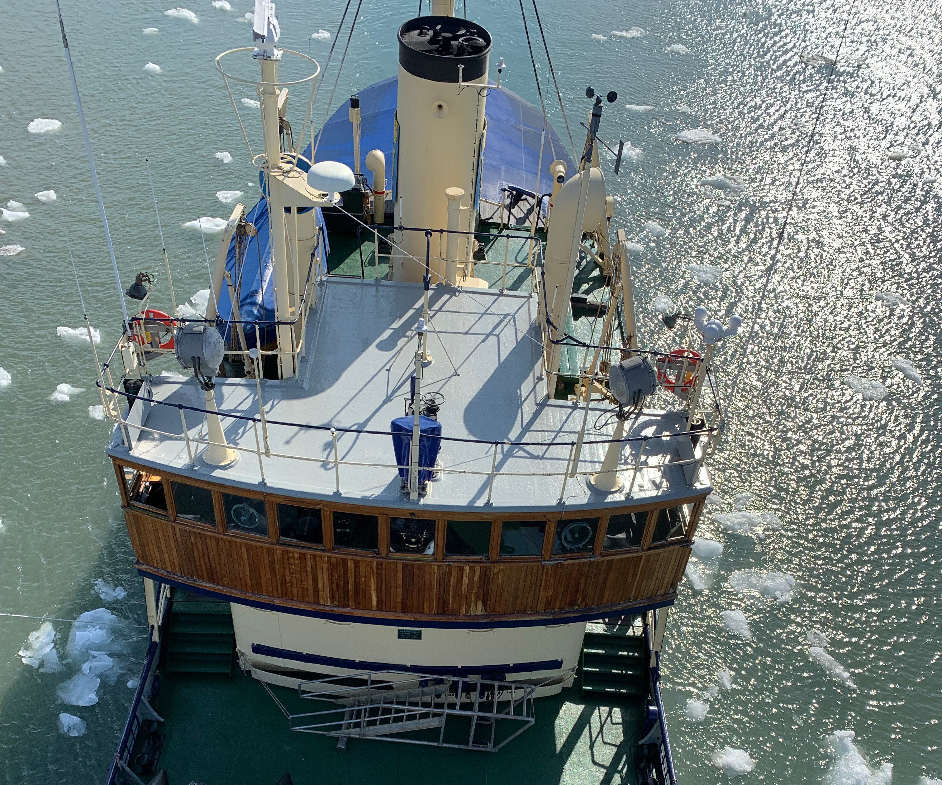 Fartyget M/S Stockholm har ankrat i Lady Franklinfjorden. Eller mer exakt, i en liten del av den. Fjorden är inte sjömätt så väldigt få båtar vågar sig hit. Vår erfarna kapten som själv har lodat vattnen här uppe har som väl är gott om kunskap om området så vi hittar fram till glaciären utan problem.