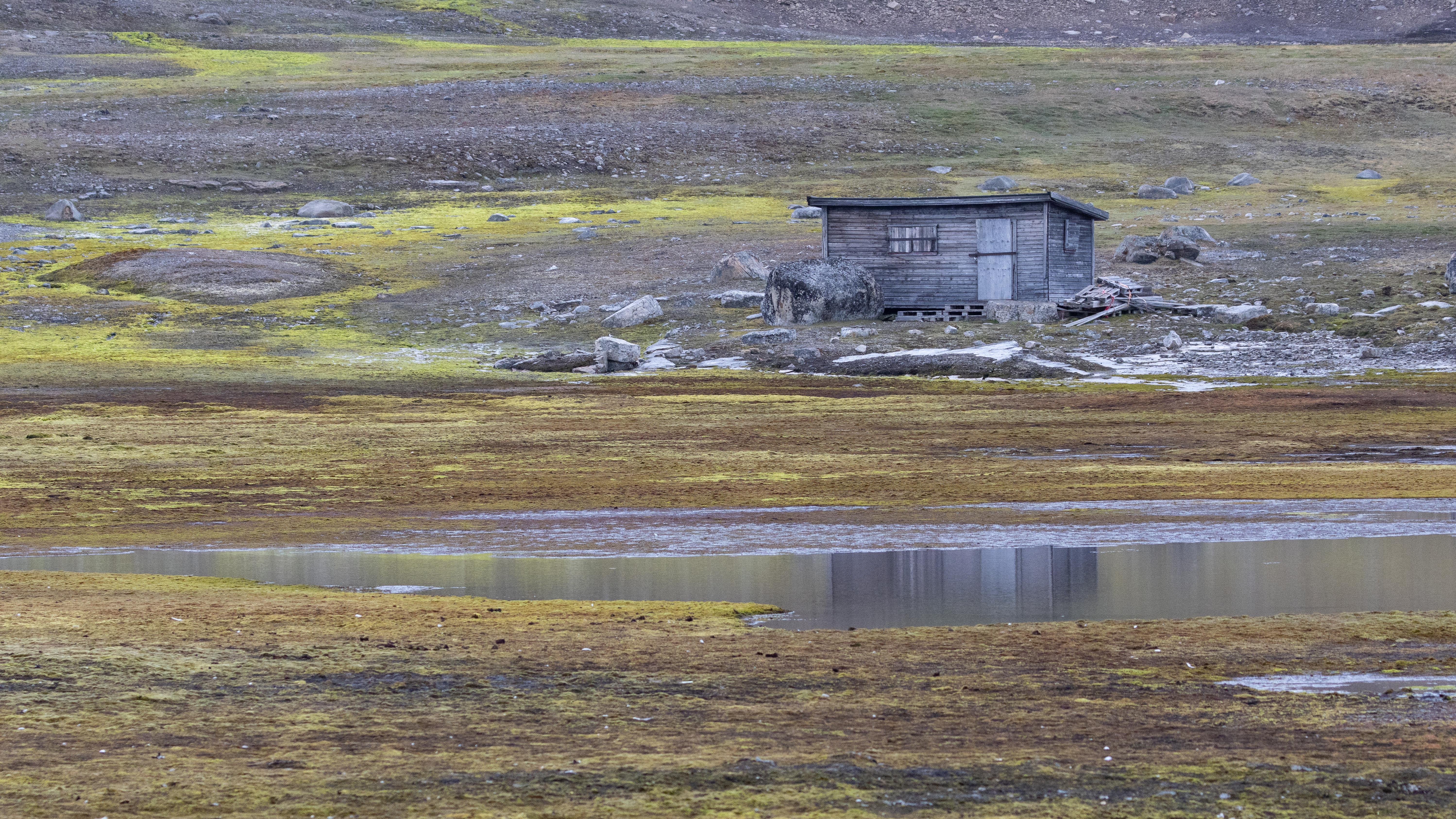 Vi fortsätter att gå upp på tundran och kommer till en liten smältvattendam där både smålom, skärsnäppa och ejder letar mat tillsammans med sina ungar. Till och med ett par kustlabbar häckar i närheten. När vi kommer tillbaka till M/S Stockholm bjuder kocken oss på en härlig middag som avlutning på den här fantastiska polardagen!