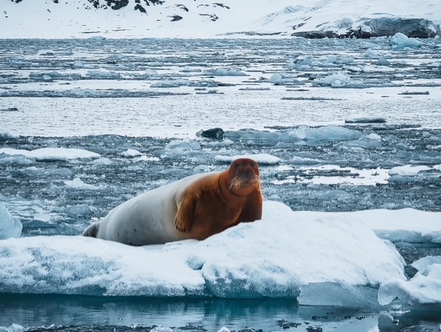 De första valrossarna hade tagit sig upp på smältande sandstränder, där snöfläckar fortfarande nådde ända ner mot strandlinjen.