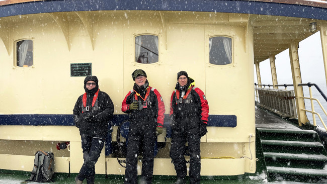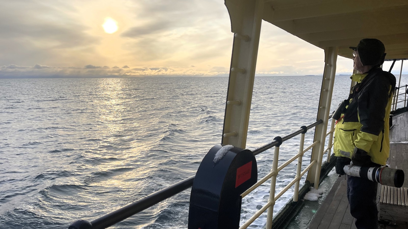 Vi vaknar upp till snöfall, det är fjärde dagen på vår expedition och en tunn dimma ligger över Raudfjorden dit vårt fartyg M/S Stockholm tagit oss under natten. Morgonkaffet avnjuts i stillhet uppe på bryggan, vi är alldeles ensamma i fjorden omgivna av vita bergstoppar, utan ett annat fartyg i sikte. Jag kan inte låta bli att tänka på att jag bara för några dagar sen drack mitt kaffe i all hast, på väg genom morgonstressen och trafikljusen i Göteborg – och nu står jag här, långt bort från stadens jäktande och rödljus.