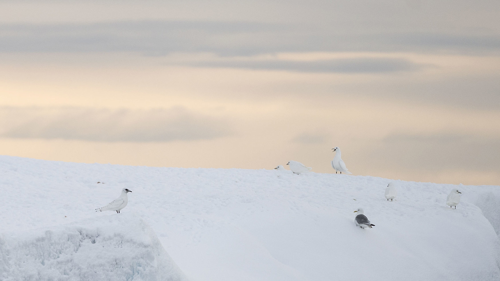 Att islandskapet är vackert när det strukturerar havsytan fick vi uppleva också denna dag, där vi provade på att gunga på ett isflak 700 meter över botten. Stormfågel, tretåig mås, tobisgrissla och ett par alkekungar förde in liv i isen, liksom uppdykande Grönlandssäl. Och senare, på ett rejält isberg, inte mindre än 16 ismåsar!