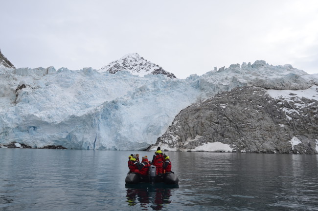 Det var dags för att lägga i de fem gummibåtarna. Först ska man hissa ner Zodiacen från övre däck samtidigt som man sitter i den, bara det kan vara en spännande resa. Strax efter detta hämtade vi upp gästerna från landgången, klockan var nio på morgonen och äventyret kunde börja!