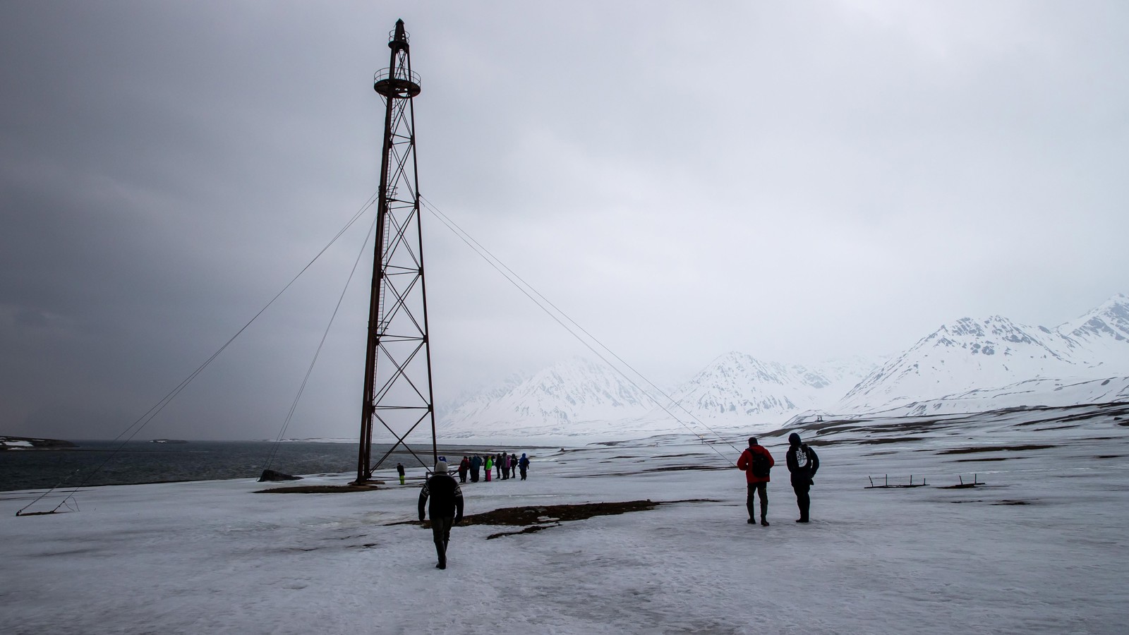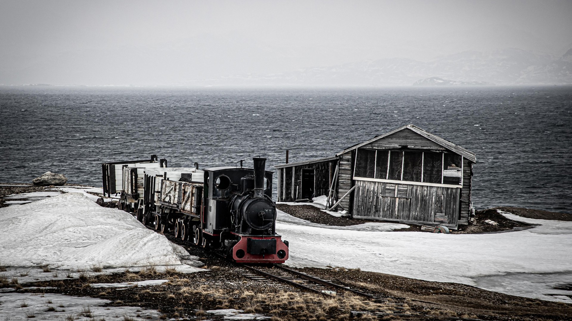Vi styrde söderut mot världens nordligaste bosättning, forskningsbyn Ny-Ålesund. Vi promenerade genom den lilla staden med flerfärgade hus, där vi hälsades av det gamla lokomotivet som användes i det tidigare kolgruvan. En lätt snöblandat dugg i kombination med vind fick det verkligen att kännas som världens ände.