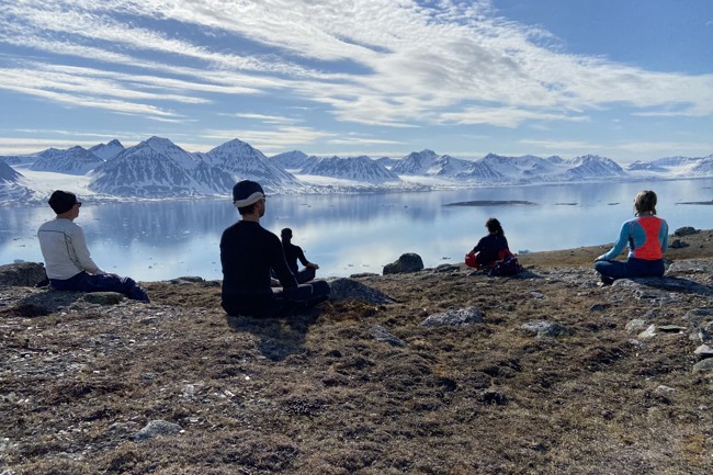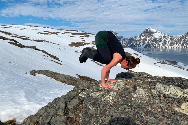 Det är svårt att föreställa sig något mer avkopplande än att yoga på en solvarm klippa med utsikt över snötäckta bergstoppar och en kristallklar fjord där himlen målar världen upp och ner. Upplevelsen förhöjs dessutom tusenfalt av känslan av att möta naturen med ett sinne som inte är påverkat av den ständiga ström av information som kännetecknar dagens samhälle.