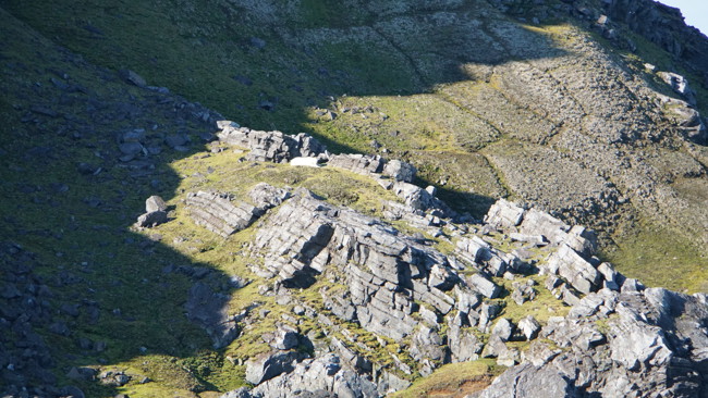 Karl XII øya är en av de minsta och nordligaste i Svalbard, man skulle lätt kunna gå från en sida till den andra inom någon minut. Och kanske var det därför också så förvånade och inte minst positivt överraskande, när vi upptäckte vår första isbjörn runt hörnet! Till och med kaptenen bestämde sig för att komma ut och titta. Isbjörnen, troligen en äldre hane, vilade med nosen mot värmen från solen.