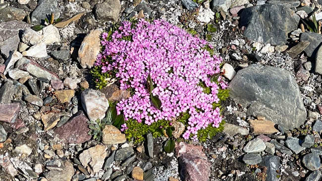 En annan blomma vi kände igen hemifrån var det vi på Svalbard kallar Fjällsyra. Förr i tiden var detta en viktig hjälp mot skörbjugg, dels för upptäcktsresande men ännu viktigare för ursprungsbefolkningen runt Arktis. Smaken på bladen är något syrlig.
