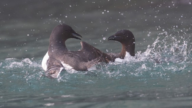 Vattnet nästan kokar av det kraftiga tidvattnet och stormfåglar, tretåig mås och grisslor dyker glatt i vattnet och fångar fisk. Det är ingen snö kvar på öarna i sundet och tankarna går till de yttre öarna i den bohuslänska skärgården.