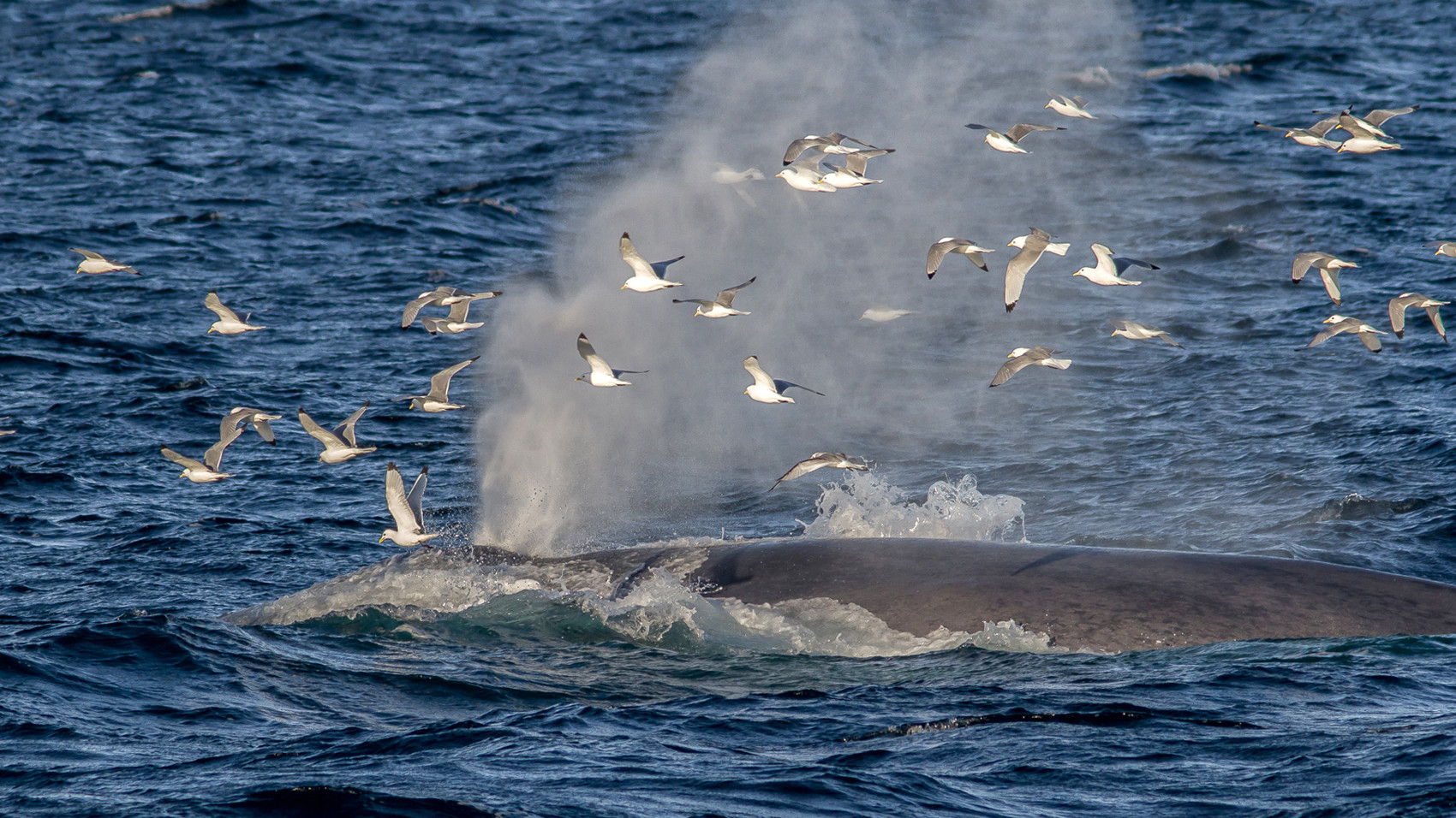 Efter lunch gjorde vi en utflykt med gummibåten inne i Recherchefjorden. Vi gick iland en stund och tittade ut över den stora glaciären. Under natten, på väg norrut, blev vi väckta av David som sett valar framför oss. Det visade sig vara både sillvalar och blåvalar och det var en helt otrolig upplevelse att få se dessa enorma djur som kommit till Svalbard för att äta av krillen som finns i vattnet här. Vilken avslutning på en jättefin dag!