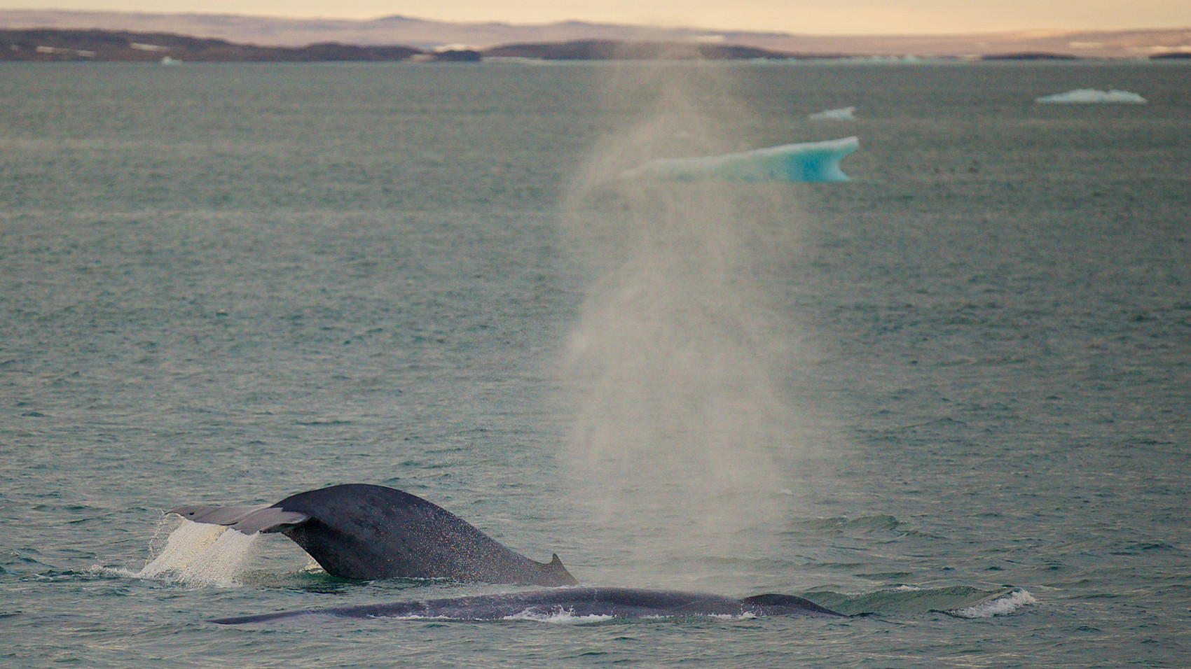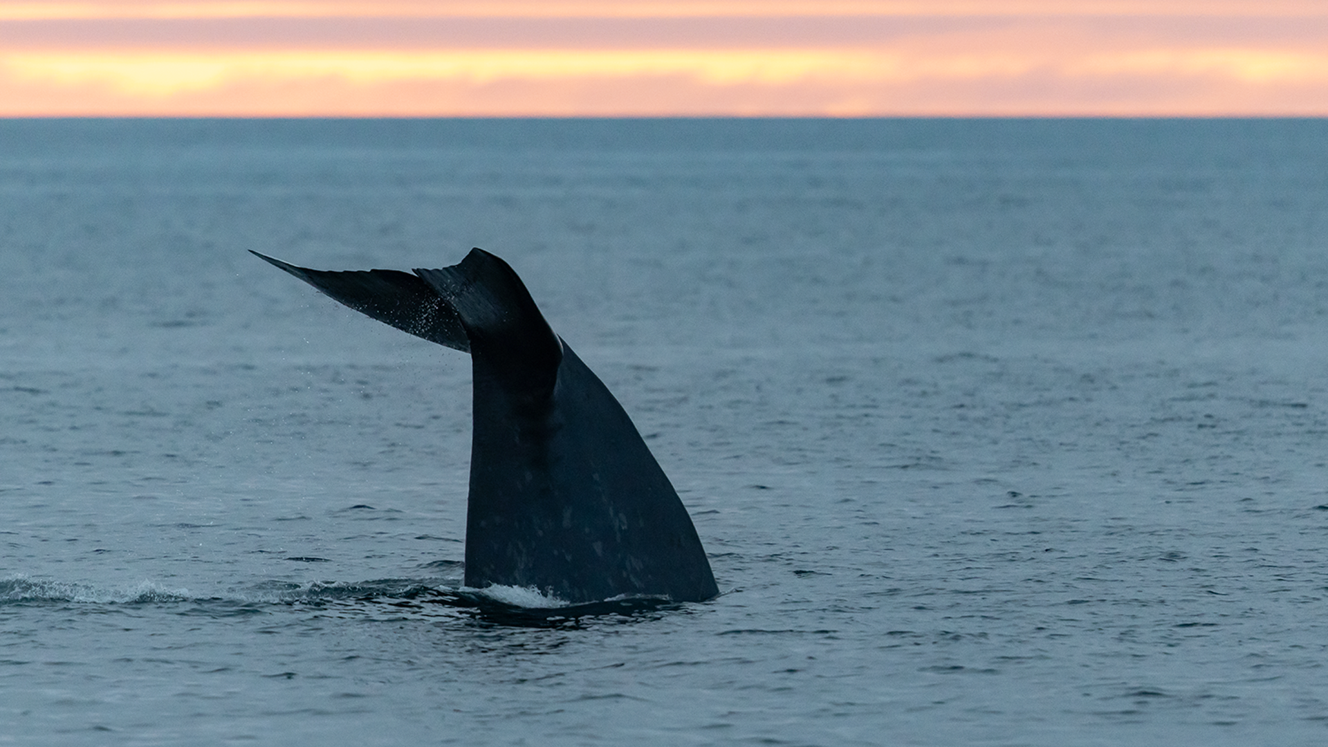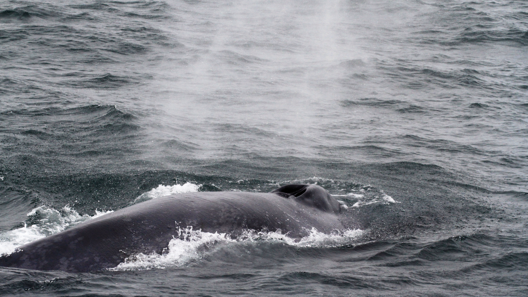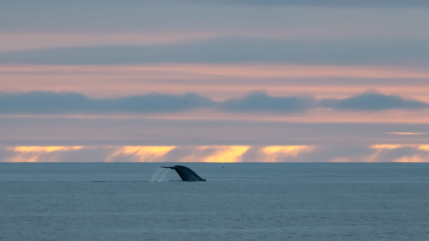 På Svalbard kan man med lite tur få en glimt av den mäktiga blåvalen som ofta söker sig till Isfjorden på sommaren i jakt på föda.