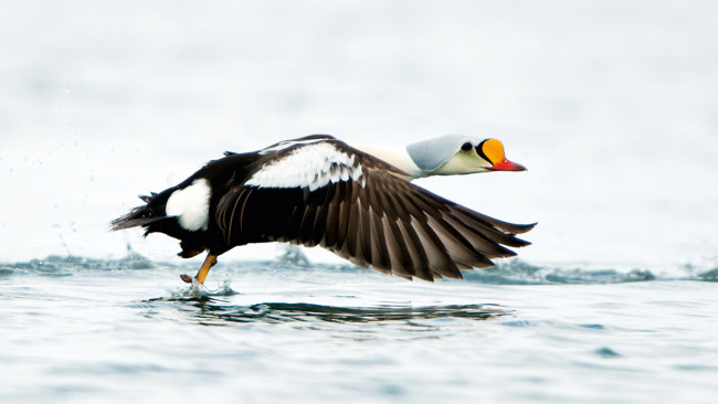 Under större delen av året håller praktejdern till i marina miljöer, men under sommarmånaderna syns den häcka på den arktiska tundran. Under en resa till Svalbard har du goda chanser att få se denna karakteristiska fågel som ingår i släktet änder. Den syns ofta i fjordarna under tidig säsong, innan isen har släppt taget om tundran och öarna. Hannen utmärker sig med sin omisskänneliga klarorangea näbbknöl i pannan och korallröda näbb, medans honan påminner mycket om den vanliga ejdern men ger ett lite snällare intryck med sina uppåtgående mungipor.