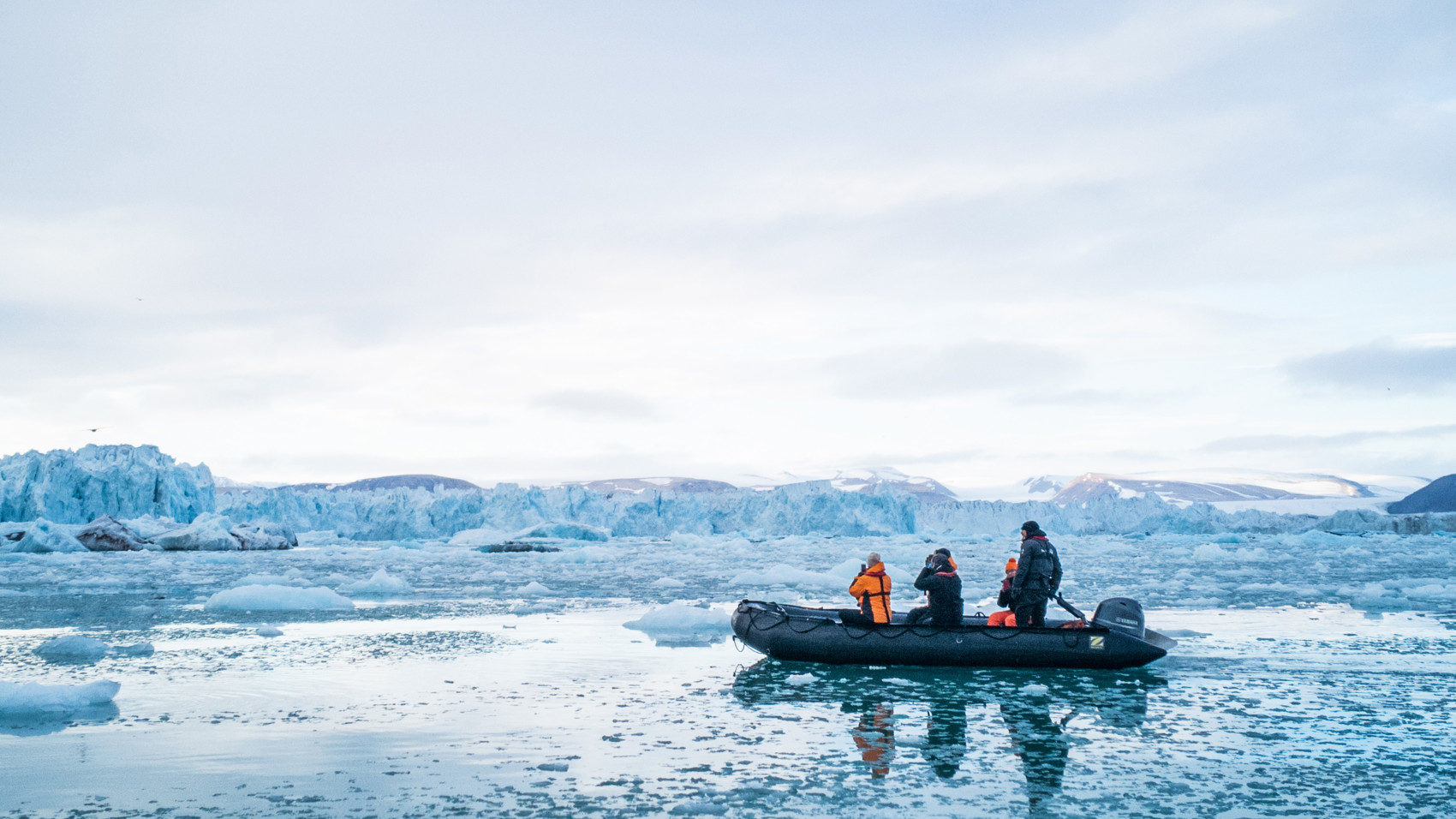 • Gummibåtsturer bland glittrande fjordis och informationer.