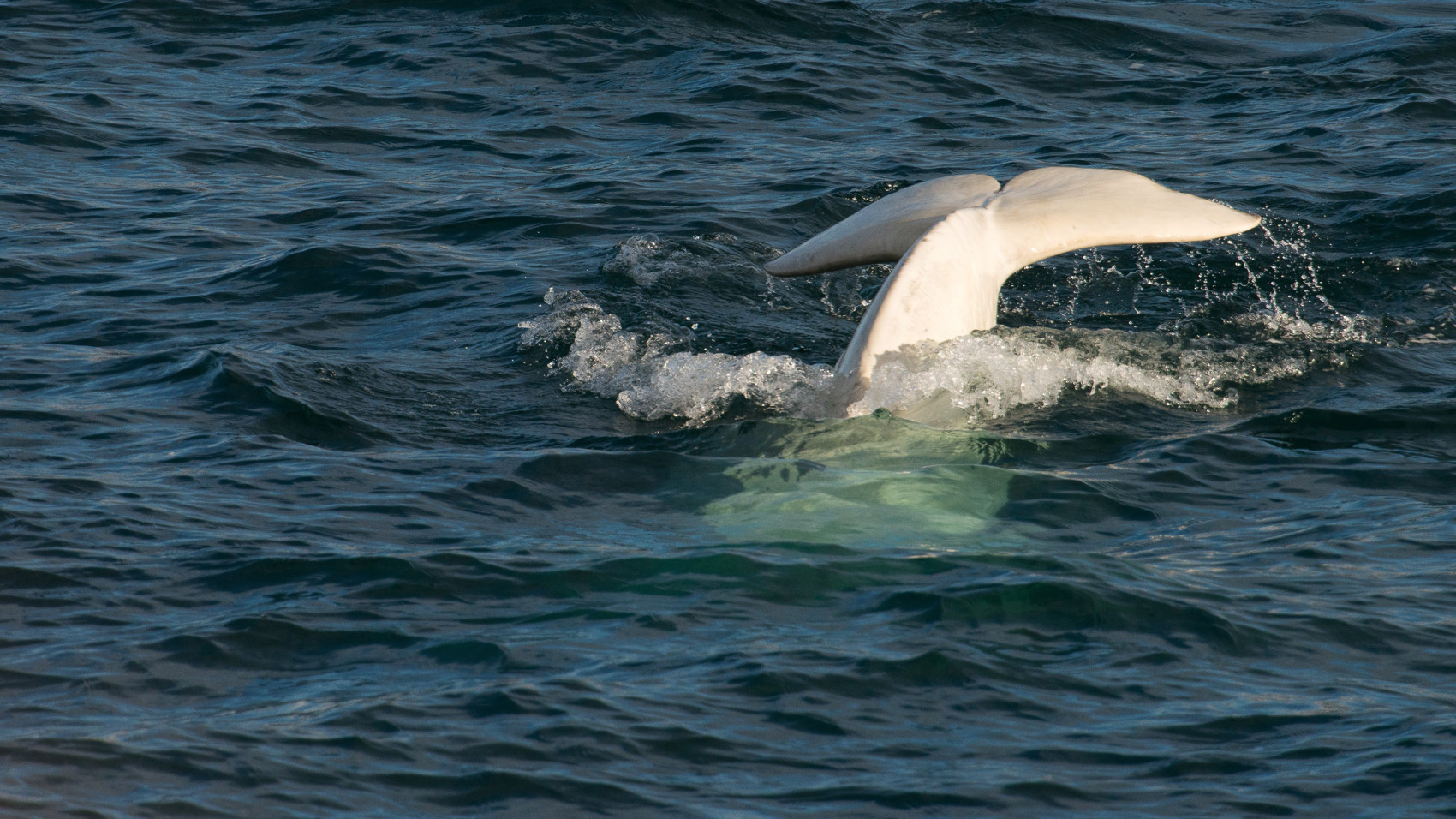 Vitvalen, känd som "havskanarien," är otroligt social och den mest pratsamma av alla valarter, och använder en mängd klickljud, visslingar och klanger för att kommunicera.