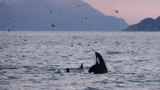 Följ med oss på en spännande resa med det lilla expeditionsfartyget M/S Stockholm. Vi utforskar de djupa nordnorska fjordarna utanför Alta, där grupper av knölval och späckhuggare brukar samlas för jakt. Detta samtidigt som vi hoppas få uppleva det majestätiska norrskenet.