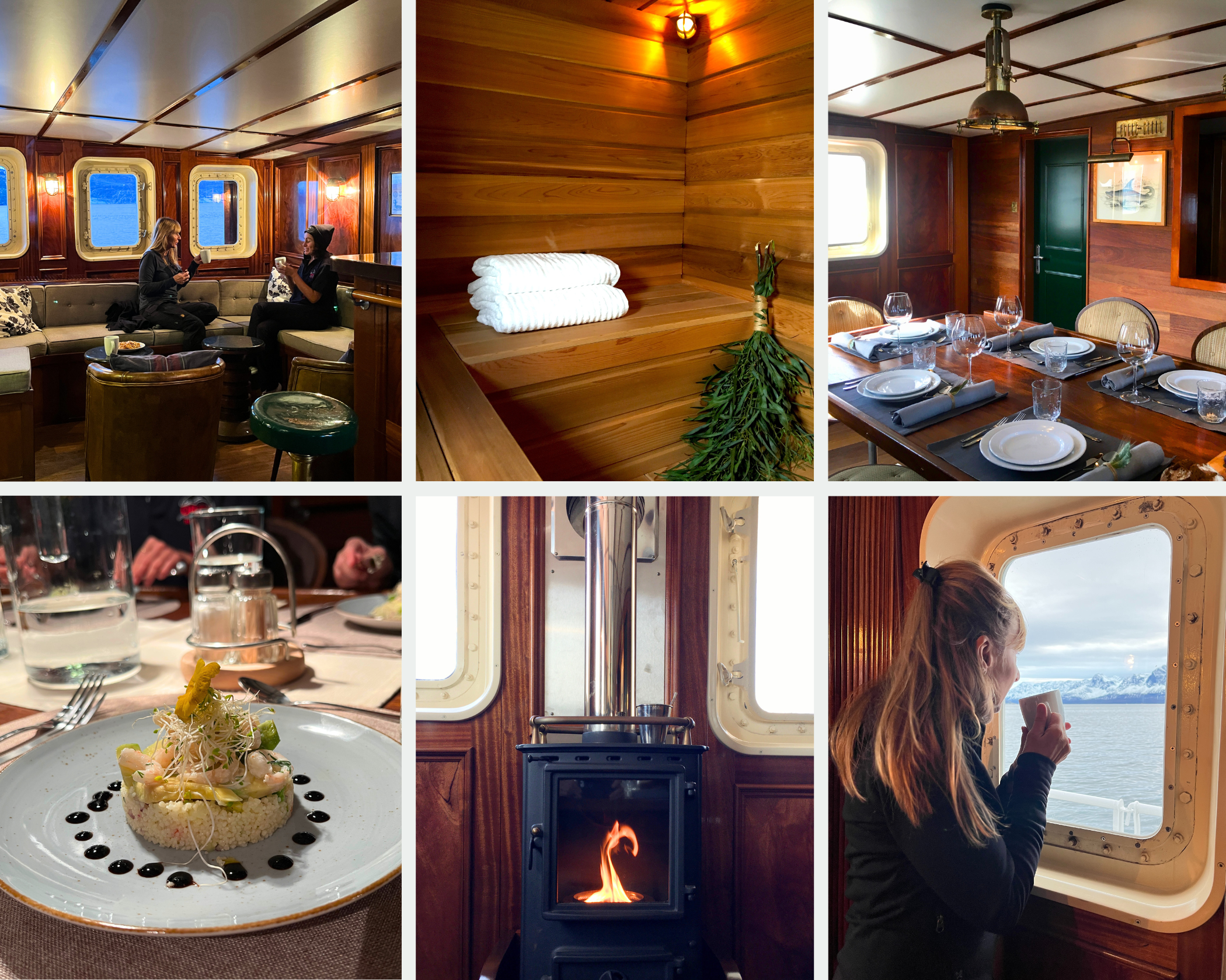 M/S Balto kombinerar smakfull design med hög komfort. Hennes interiör i mahogny och varma atmosfär skapar en elegant men avslappnad miljö, perfekt för att utforska Grönlands avlägsna fjordar och dramatiska kustlinjer. Den smakfullt inredda salongen och den vackra matsalen har träpanel av mahogny, bar och ett litet bibliotek. Kaffe och te finns alltid tillgängligt. Ombord finns även en liten bastu – det perfekta sättet att varva ner efter en händelserik expeditionsdag.