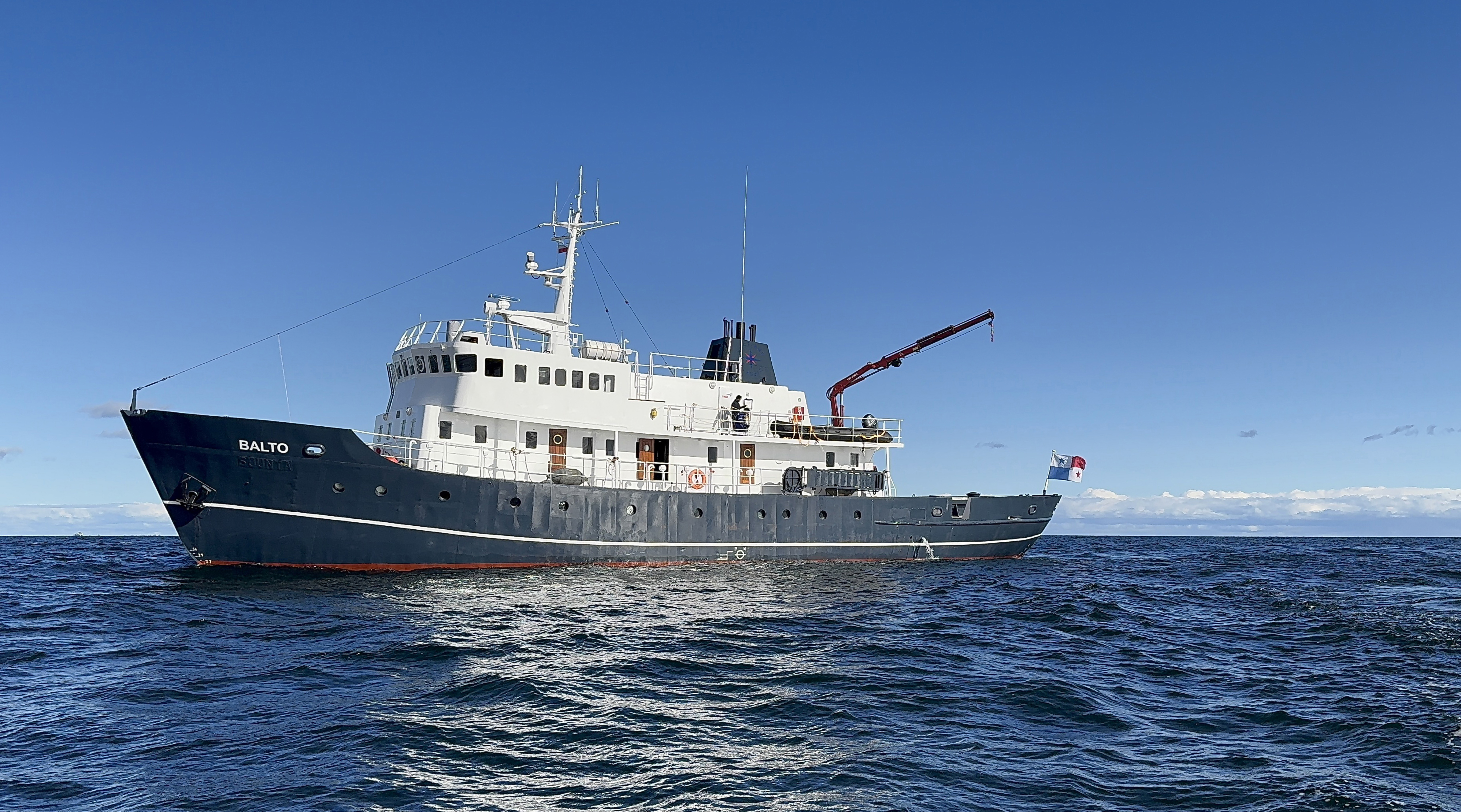 Fartygets öppna däck erbjuder generösa observationsytor där du kan njuta av det storslagna arktiska landskapet samt spana efter djurliv och isberg. Bryggan är alltid öppen för besök och du välkomnas av en internationell besättning som talar engelska. M/S Balto är utrustad med stark el-diesel-drift som ger mjuk och vibrationsfri manövrering – idealiskt för fotografer och filmare.