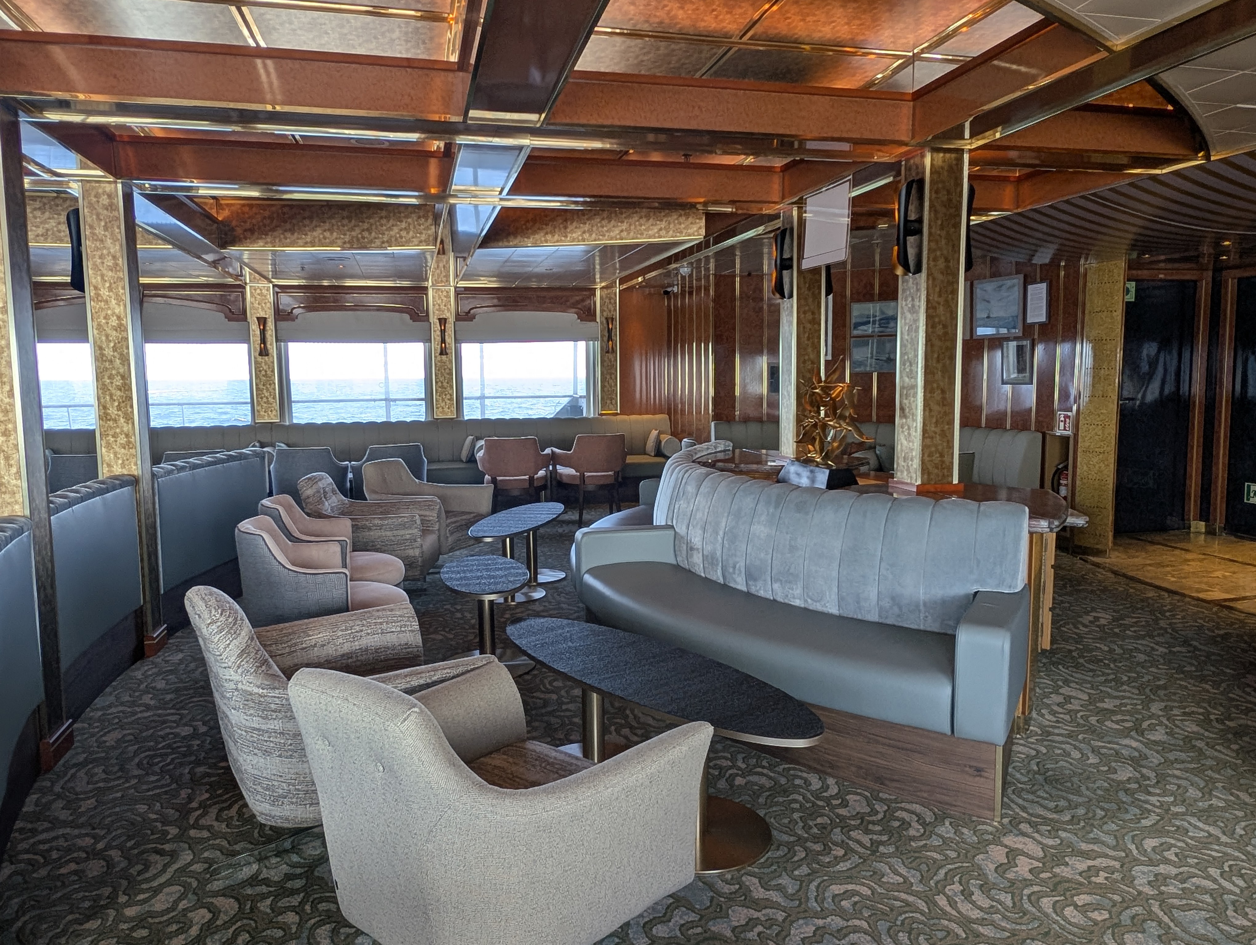 De rymliga och elegant inredda allmänna utrymmena ombord på M/S Island Sky inkluderar en stor lounge på Columbus-däck med flera sittplatser där dagliga genomgångar och föreläsningar hålls. Det är också möjligt att följa alla föreläsningarna ombord från bekvämligheten av din svit.