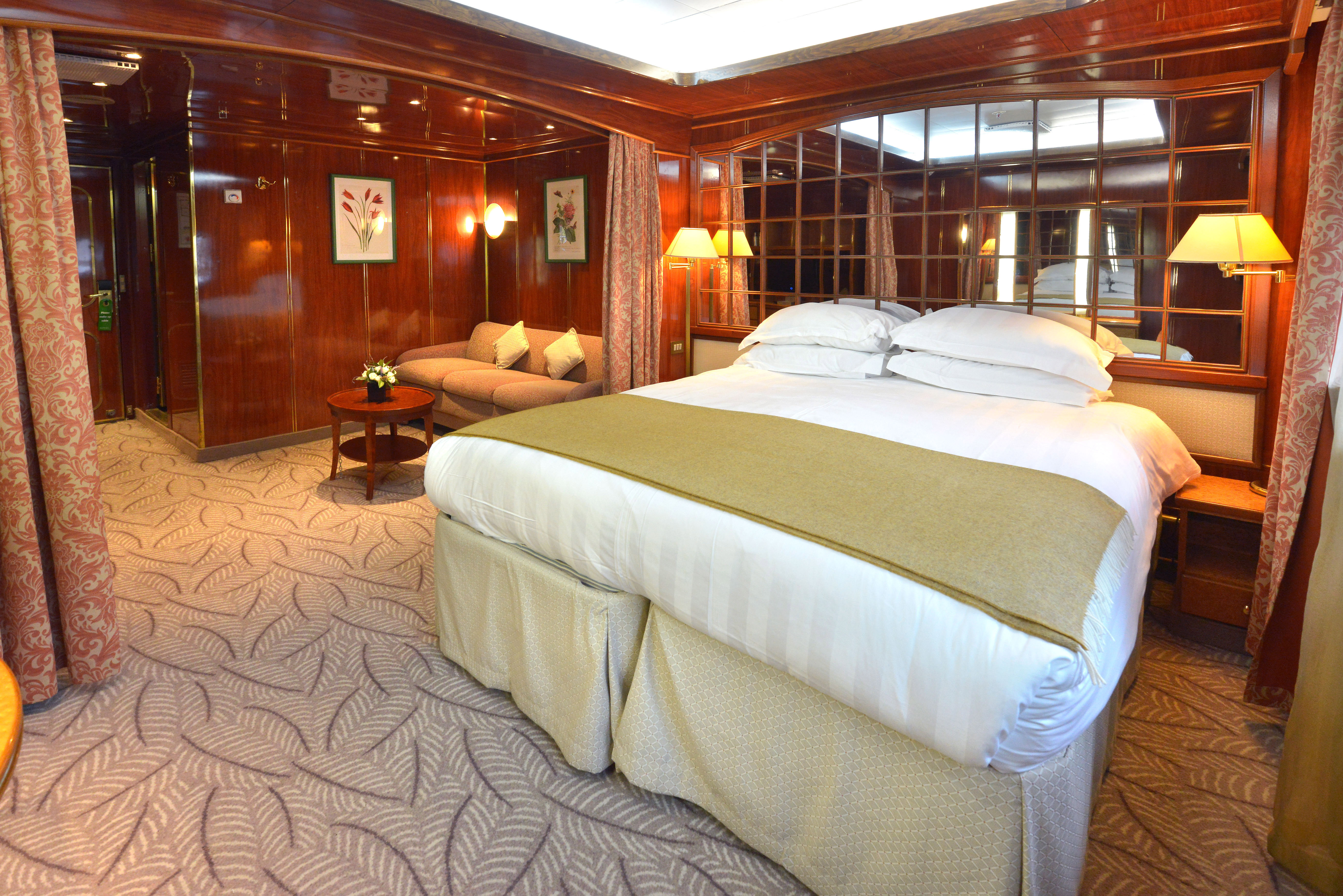 M/S Island Sky har 59 exceptionellt rymliga och välplanerade sviter. Alla har en sittgrupp och vissa har privata balkonger, medan sviterna på Marco Polo-däck har tonade skjutdörrar i glas som ger en betydligt bättre utsikt från sviten och snabb tillgång till däcket när valar eller delfiner syns till. Känslan av lyx förstärks av träpaneler och mässingsbeslag, som dominerar hela fartyget och förmedlar atmosfären av en privat yacht. Passagerarutrymmena är fördelade på fem däck och alla sviter har utsikt. Varje svit erbjuder betydande komfort med eget badrum med marmorplattor, handfat, dusch, en stor garderob, toalettbord med stor spegel och pall samt utmärkt förvaringsutrymme. Det finns även ett minikylskåp, platt-TV och telefon i varje svit.