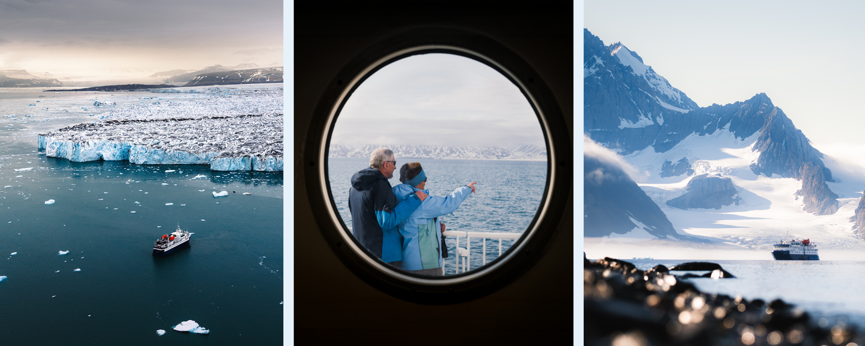 Jag vill passa på att tacka för en jättefin reseupplevelse. Min man och jag var mycket nöjda med vår tur till Svalbard. Framför allt imponerades vi av det genomtänkta upplägget med kunniga och effektiva guider, en mycket bekväm båt med vår fina hytt och överraskande god standard beträffande alla måltider. Naturupplevelserna var fina och vyerna lever vi på länge. Det var en oerhört stark upplevelse att vara i dagsljus i 8 dygn. Helt underbart. Så än en gång: stort tack! Om vi skulle få kunder/gäster som intresserar sig för Svalbard vet vi vart vi skall vända oss eller rekommendera dem att vända sig.