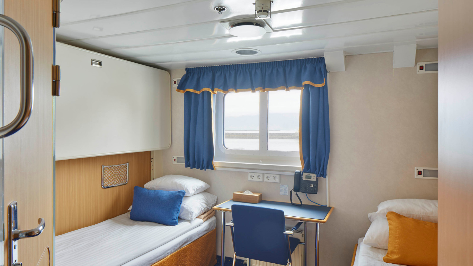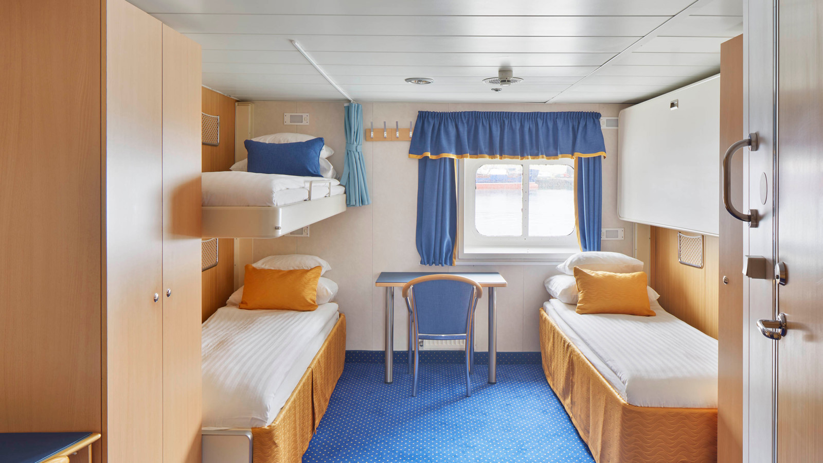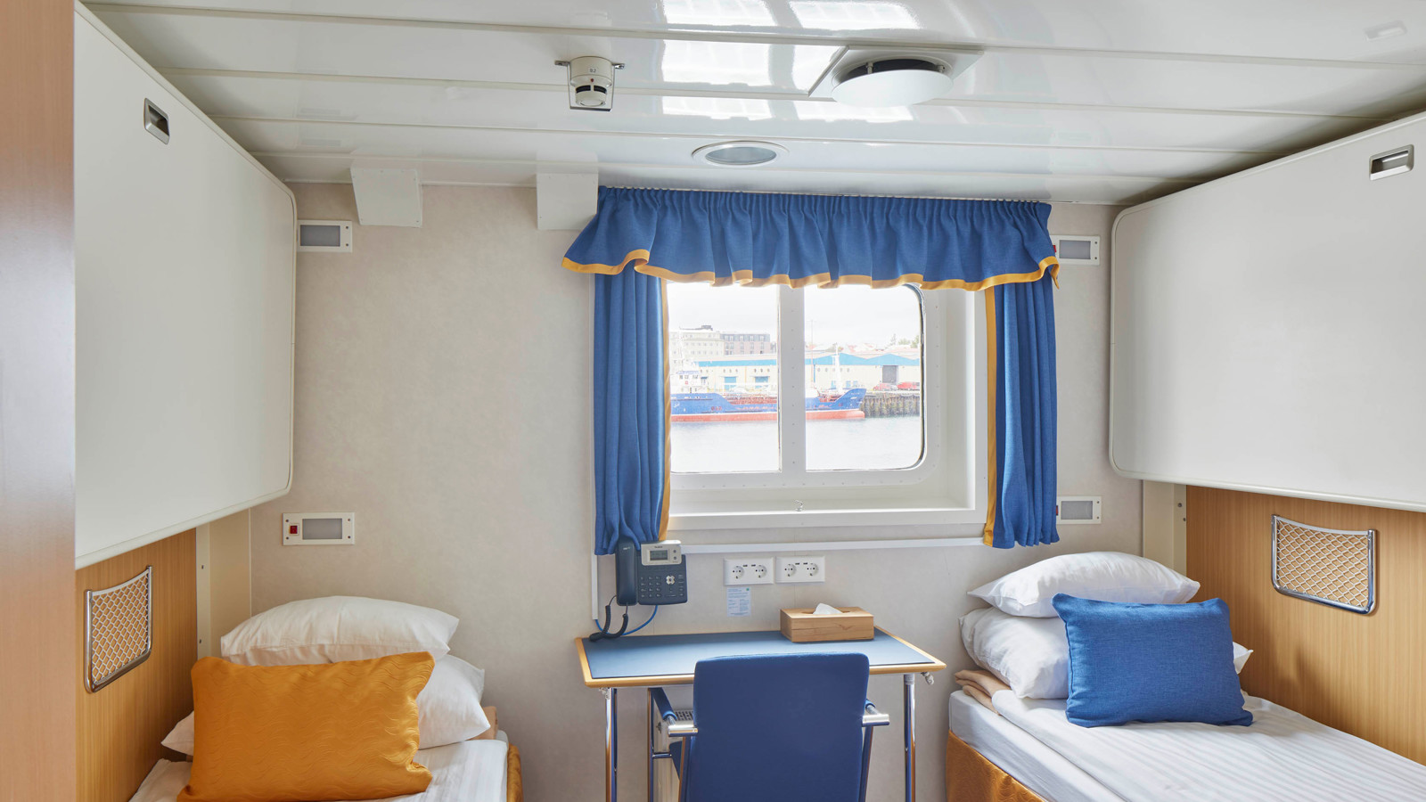 Ombord finns bekväma dubbel- och trippelhytter, alla med havsutsikt och privat dusch och WC. I alla hytter finns skrivbord med stol och gott om plats att förvara kläder och annan utrustning.