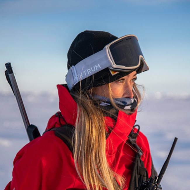 2012 flyttade hon till Svalbard där hon licensierade- och utbildade sig till polarguide. Nu, oavsett om det är att korsa Spetsbergen med skidor eller pulka, paddla kajak vid glaciärer eller leda expeditioner på expeditionsfartyg, gör hon det med genuin passion och gedigen kunskap.