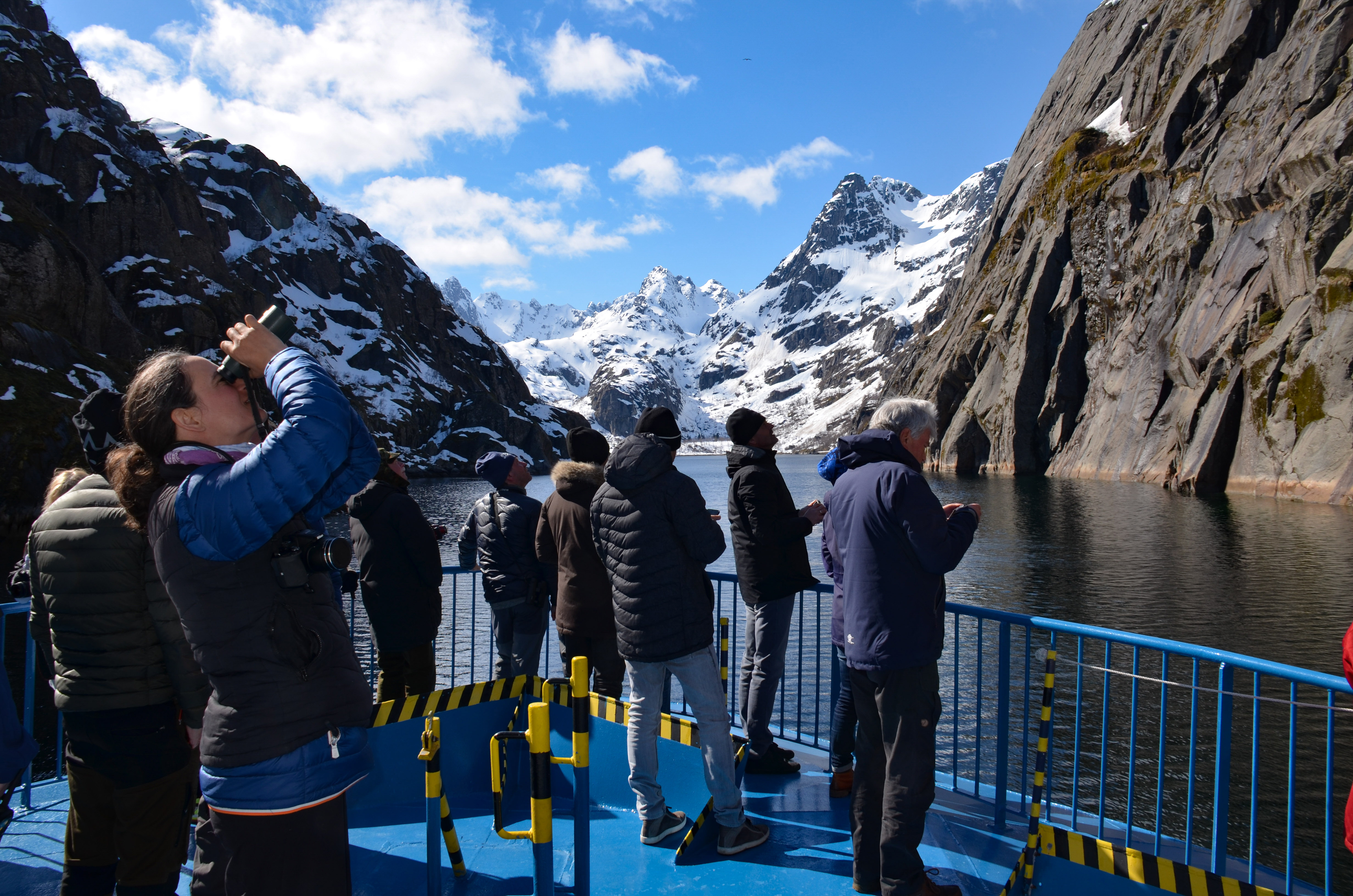 Vi spenderade vår eftermiddag på en landstigning vid fågelklippan, Fuglesangen på Svalbard. Där besökte vi en stor alkekungskoloni. Det är en otrolig upplevelse att få uppleva fågellivet på så nära håll och att få lyssna till ljudet av tusentals sjöfåglar och snösparvar.
