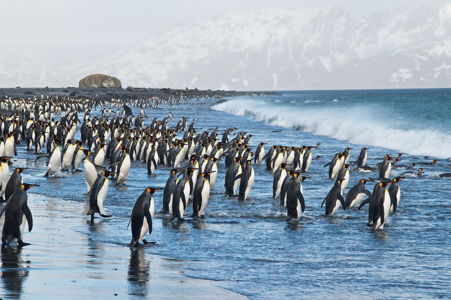 Denna avlägsna paradisö bjuder på enorma bergskedjor, väldiga glaciärer och mängder av frackklädda kungspingviner. Vi anländer i början av sommaren då ön fortfarande är vackert inbäddad i ett tunt lager snö. För alla som tycker om djurliv är Sydgeorgien en riktig oas. En högljudd kör av hundratusentals pingviner kan möta oss på platser som St Andrews Bay eller Salisbury Plain. Kolossala elefantsälar vältrar sig på sandstränderna och vid den här tiden har vi möjlighet att se de imponerande slagsmålen mellan den härskande haremskungen och utmanande hannar. Sydgeorgien är även hem åt pälssälar och flera pingvinarter såsom macaroni, hakrem- och gentoopingviner.