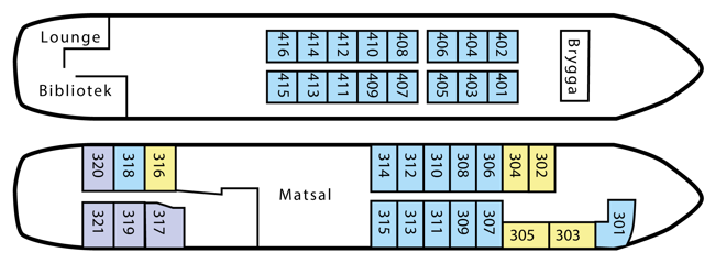 *Vänligen notera: Det finns ett begränsat dubbelhytter med dubbelsäng. Meddela oss om ni önskar detta så återkommer vi med tillgänglighet.