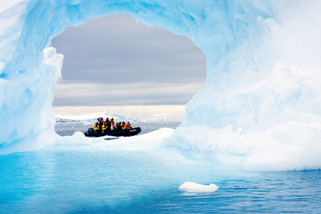 Vidare söderut, längs den Antarktiska halvön, ligger den massiva packisen fortfarande tjock. Nu visar vårt isförstärkta fartyg och dess besättning sin verkliga kapacitet. Vi rör oss igenom labyrinter av mäktiga isberg och söker oss till de mest natursköna platser. Bland pampiga, snöklädda bergskedjor kantade av blåskiftande glaciärer, söker vi efter val och säl och iland besöker vi kolonier med charmiga gentoo- och adeliepingviner. Under gynnsamma väderförhållanden hoppas vi sätta fot på kontinenten i Harbour Bay eller Paradise Harbour.